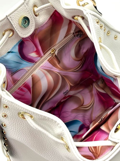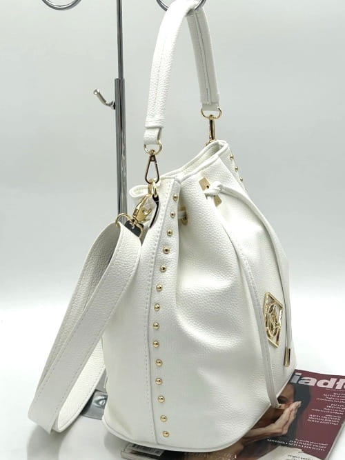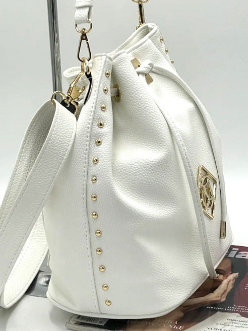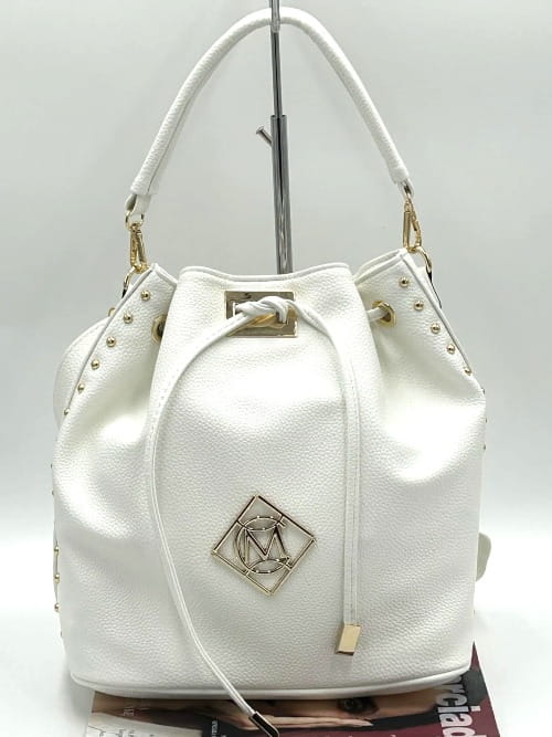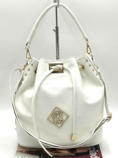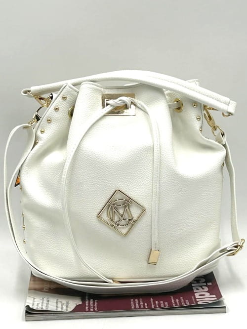 Biała torebka worek Massimo Contti z eko skóry z eleganckimi złotymi detalami