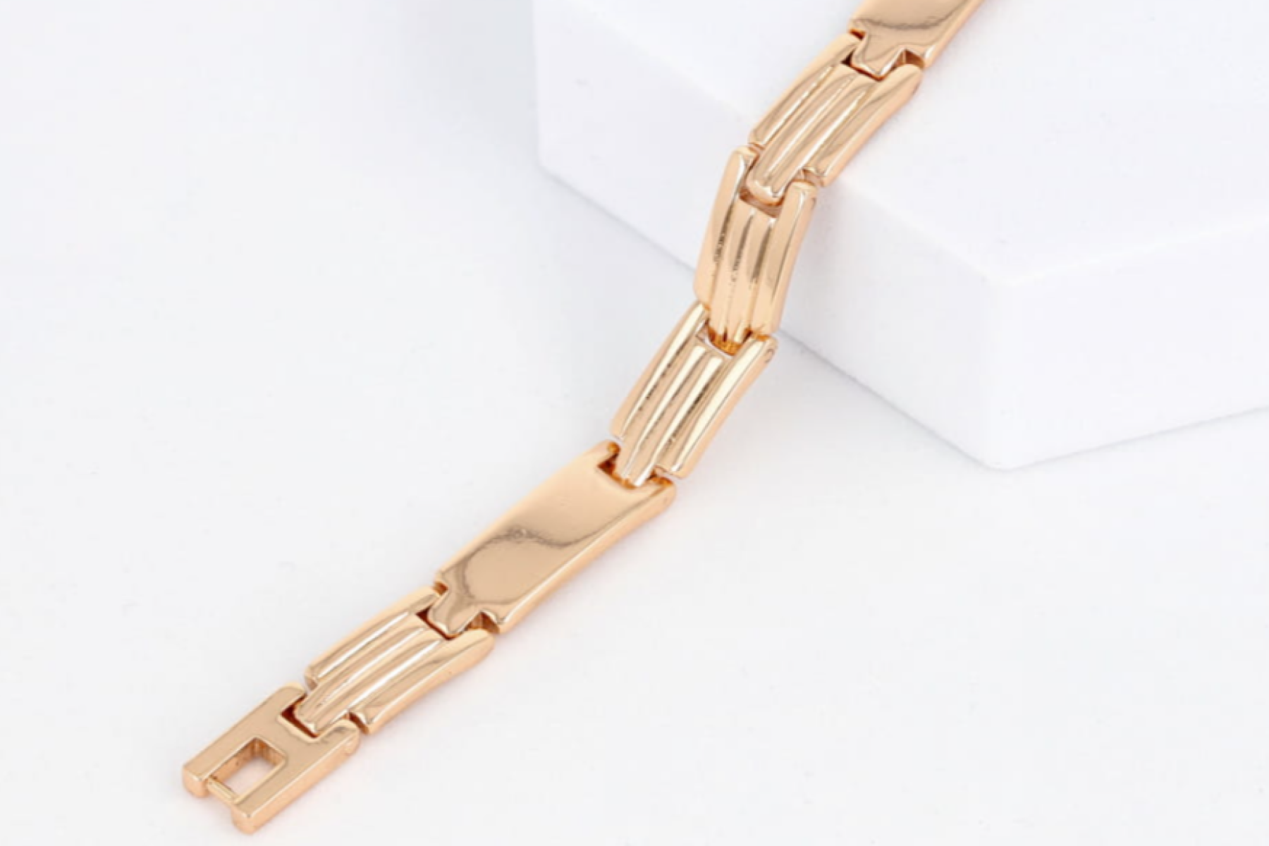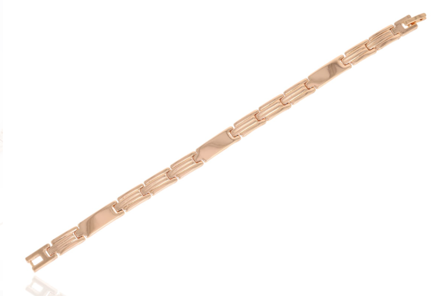 Ta bransoletka z miedzi pokrytej złocistą powłoką to wyjątkowy dodatek dla kobiet ceniących subtelny błysk i stylowy detal. Precyzyjnie wykonane sztabki z delikatnym grawerem tworzą spójną, elegancką kompozycję, która pięknie prezentuje się na nadgarstku.