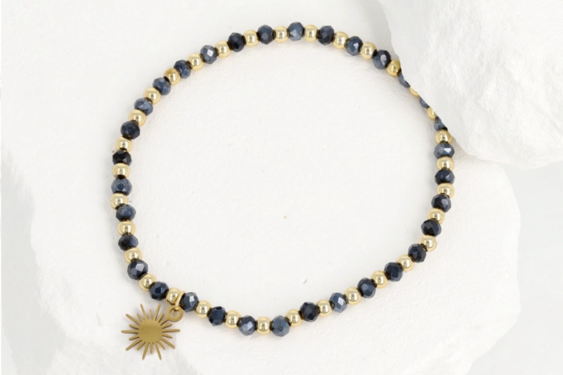 Granatowo-złota bransoletka z zawieszką słońce – elegancja z nutą symboliki