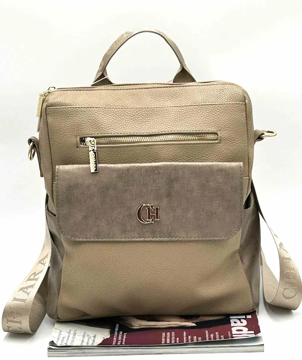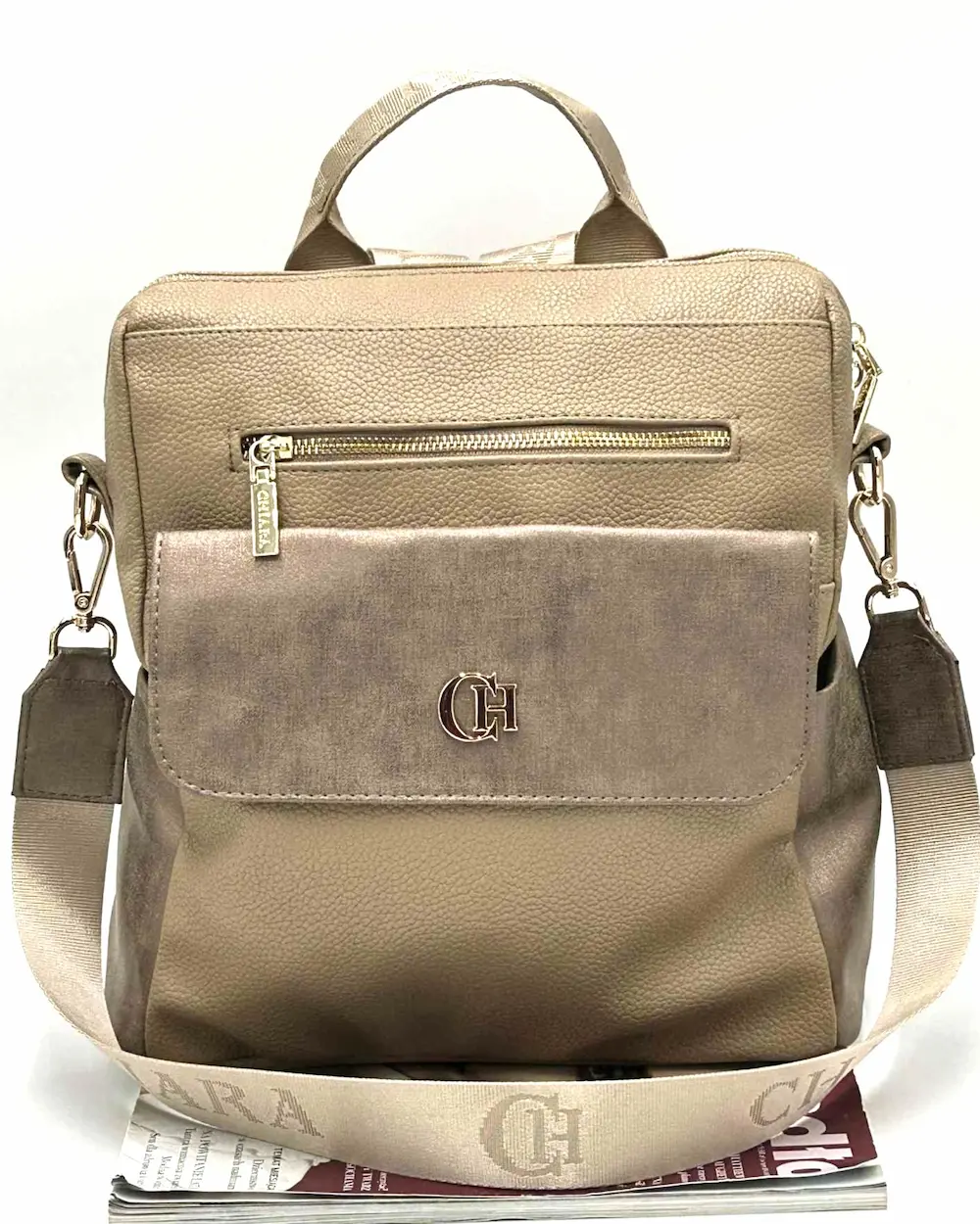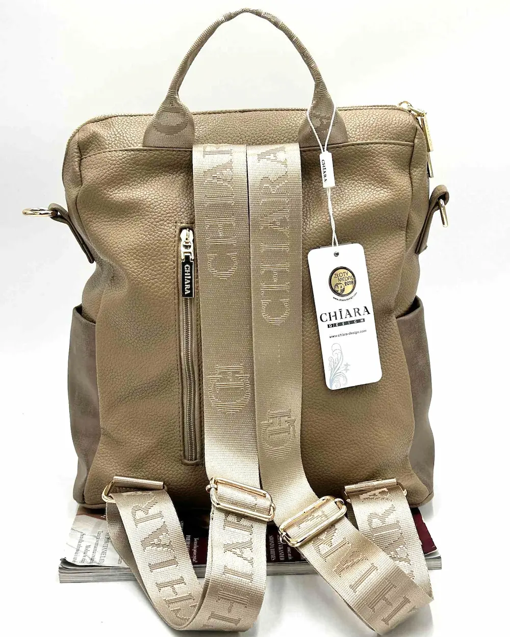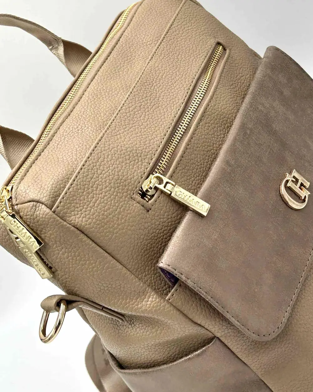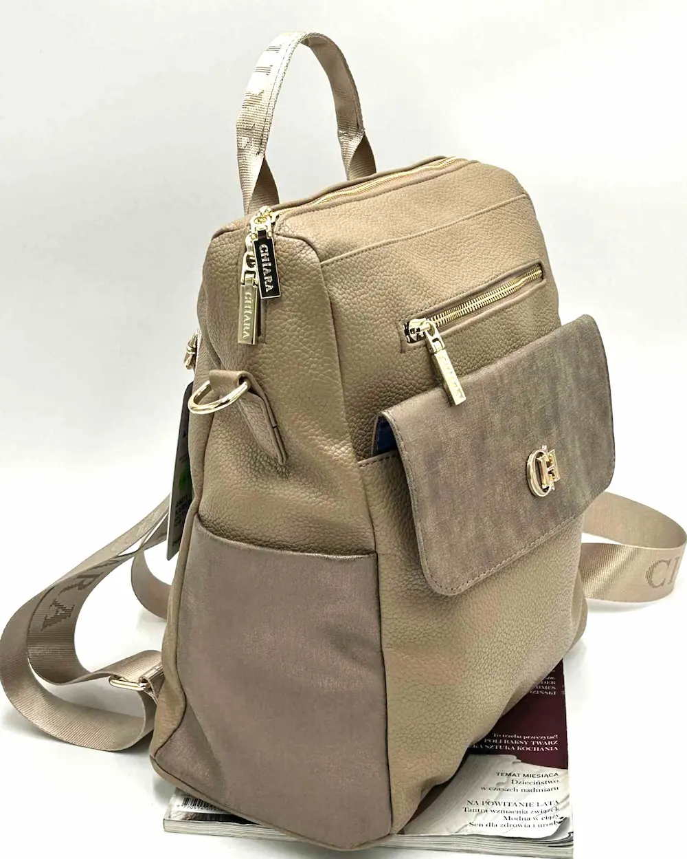 Chiara damski plecak taupe ze złotymi akcentami – elegancki i praktyczny