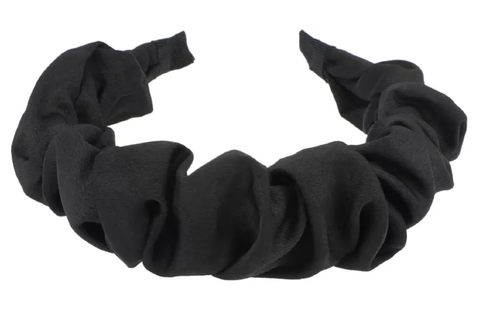 Czarna opaska do włosów – plastikowa z marszczonym materiałem