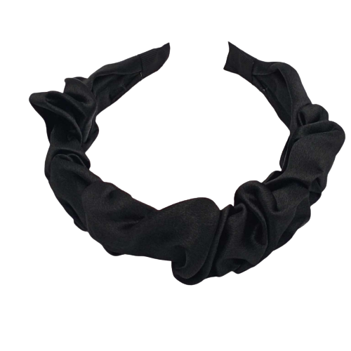 Czarna opaska do włosów z połyskiem – plastikowa z marszczonym materiałem