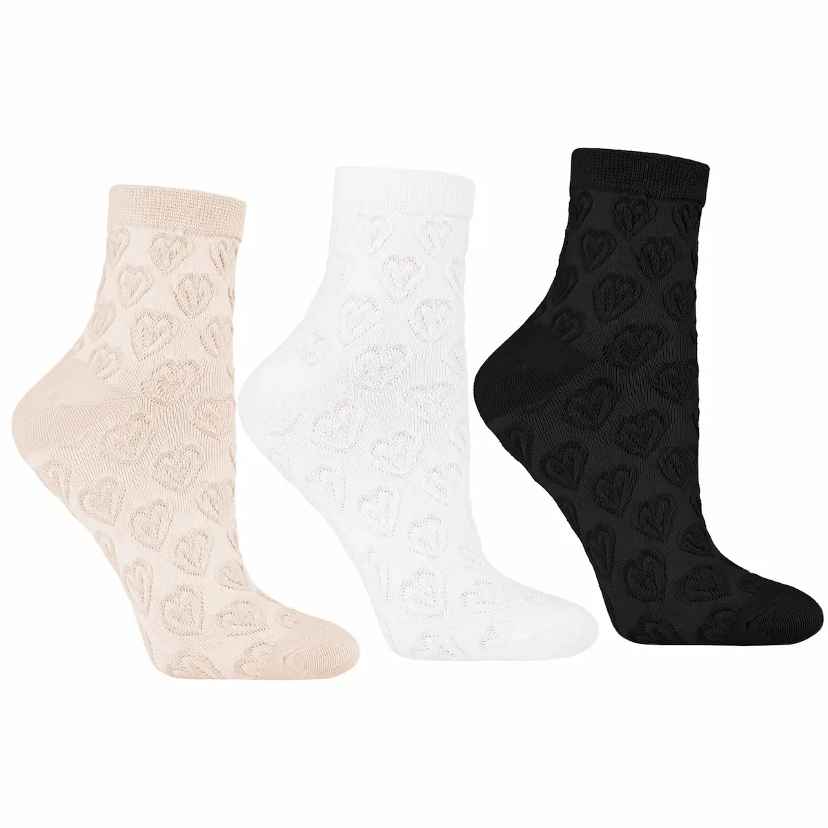 Damskie skarpetki Moraj z ażurowym wzorem serc – zestaw 3 par, rozmiar 38–41