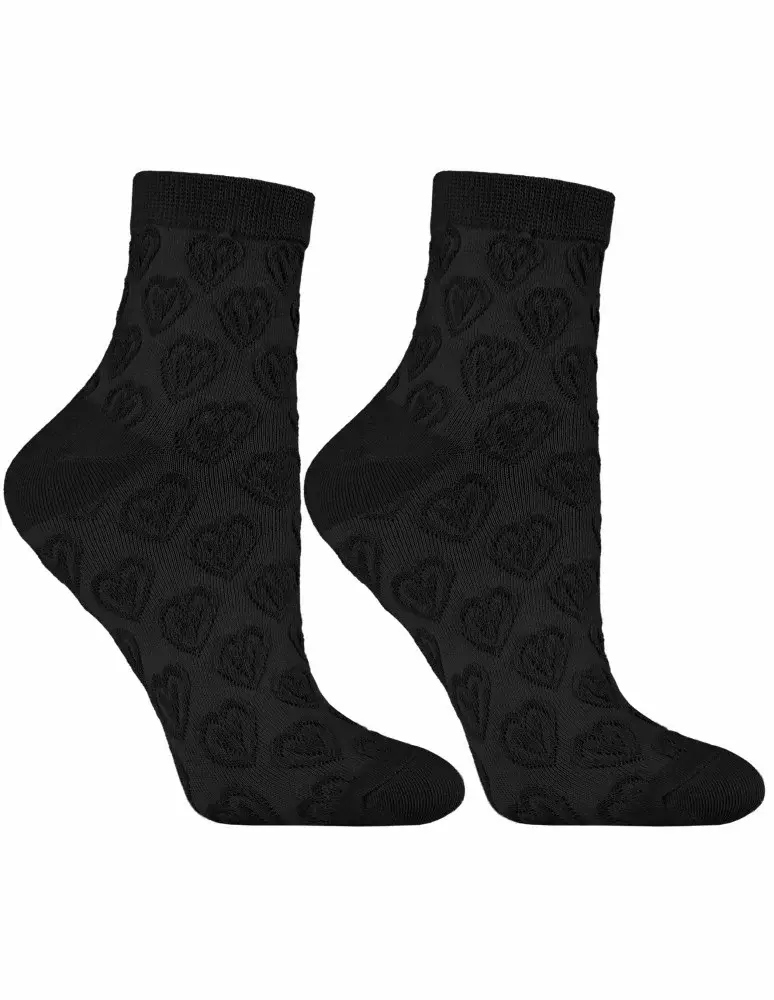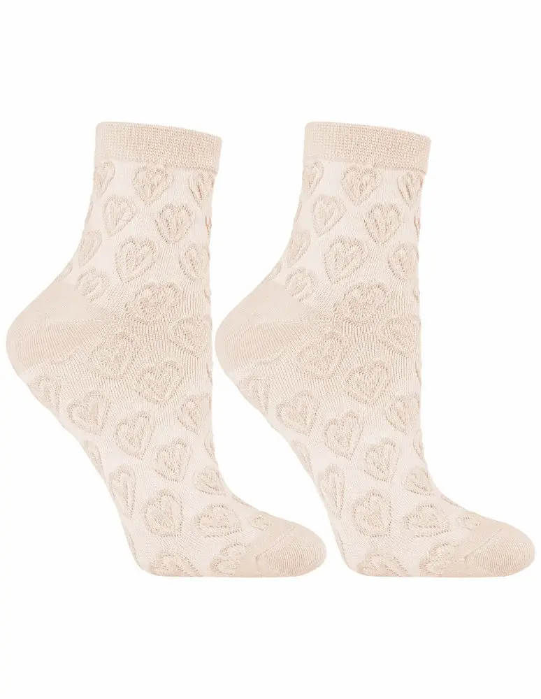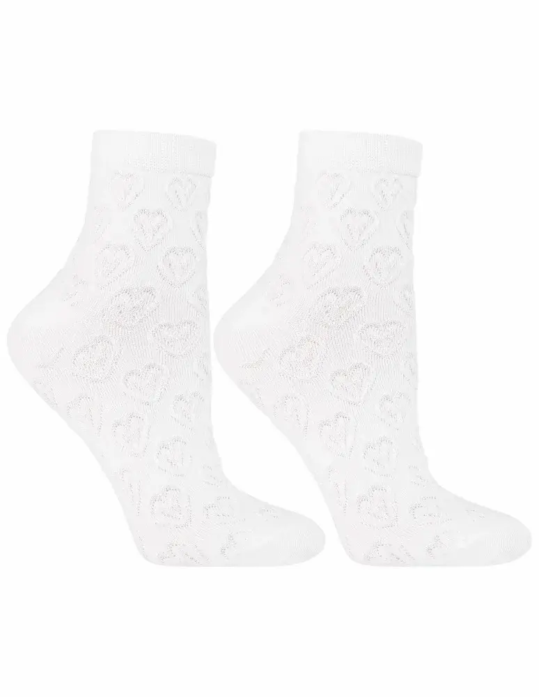 Każda para wykonana jest z miękkiej i przewiewnej bawełny z dodatkiem elastycznych włókien, co sprawia, że skarpetki idealnie dopasowują się do stopy, są lekkie i niezwykle komfortowe w noszeniu. Delikatny ażurowy wzór w serduszka dodaje im romantycznego, dziewczęcego charakteru i sprawia, że świetnie komponują się zarówno z codziennymi stylizacjami, jak i bardziej eleganckimi zestawami.