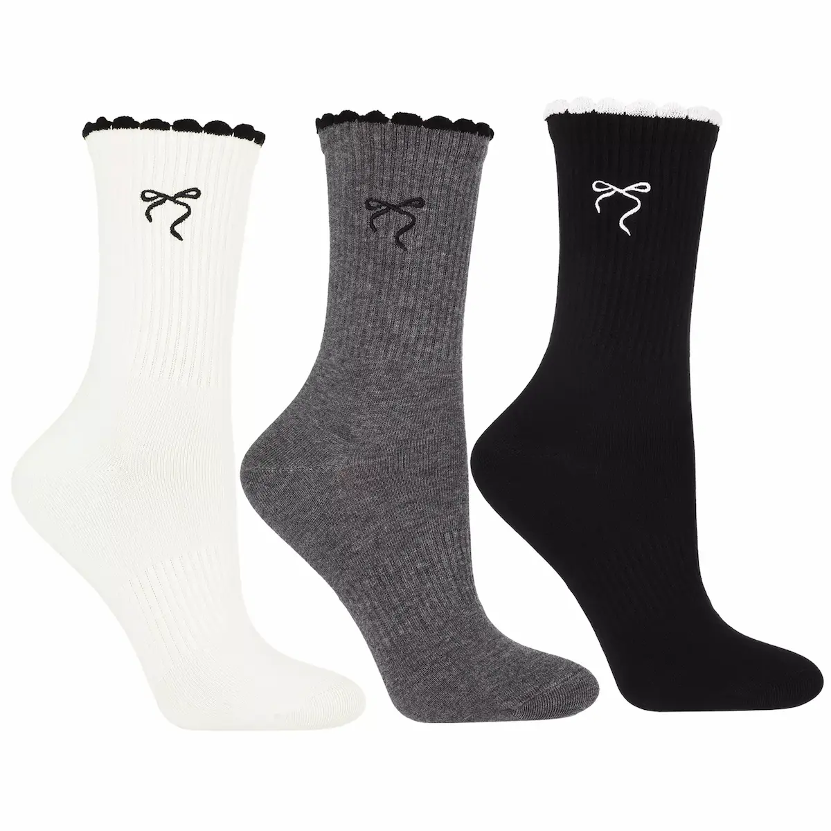 Eleganckie skarpetki damskie Moraj z falbanką i kokardką – zestaw 3 par