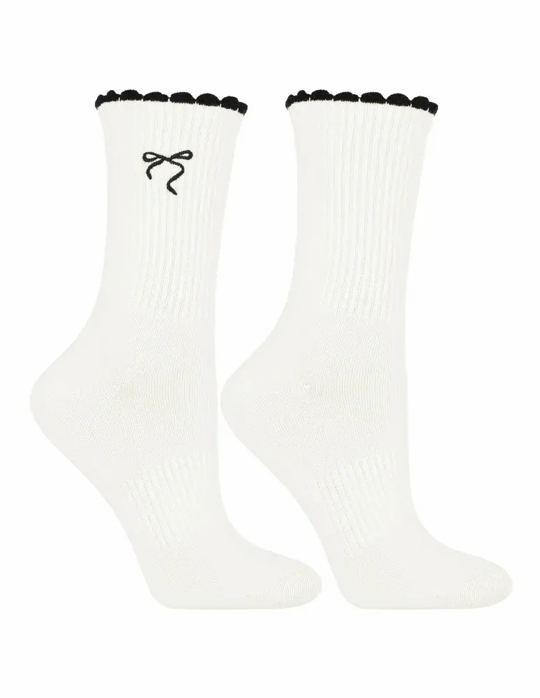 Wyjątkowego charakteru nadaje im urocza falbanka przy ściągaczu oraz subtelny haft kokardki, które dodają dziewczęcego, stylowego akcentu. To doskonały wybór zarówno do sneakersów i mokasynów, jak i do butów na obcasie.
