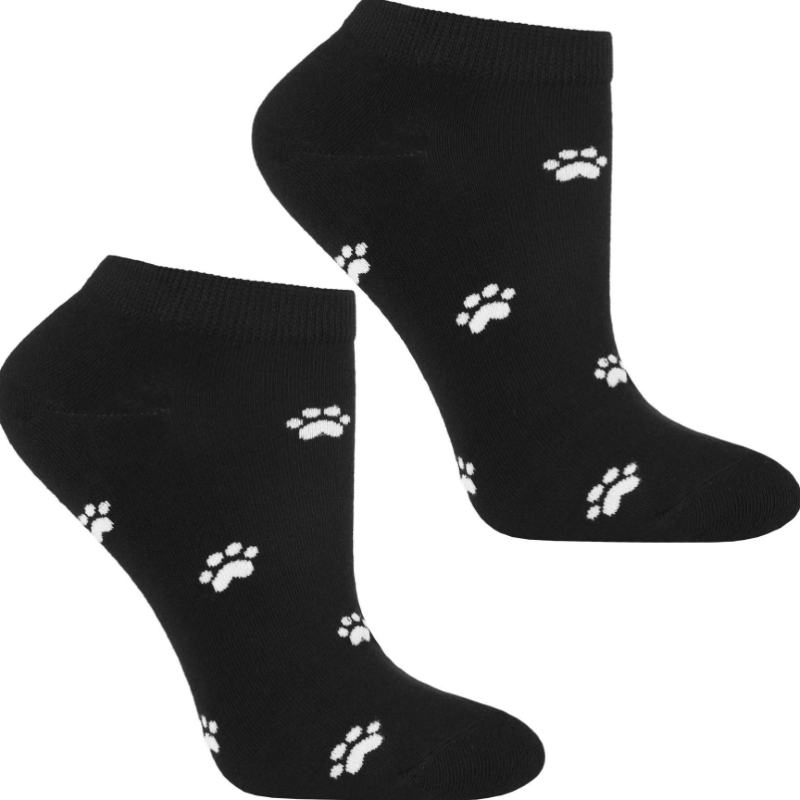 Czarne skarpetki z białymi łapkami – klasyka z pazurem