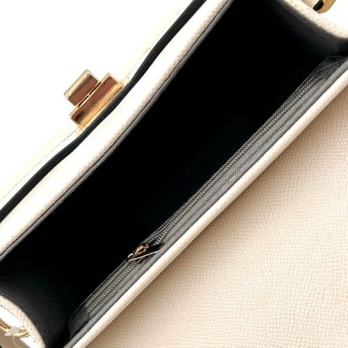 Wnętrze torebki zostało starannie wykończone szarą podszewką i wyposażone w praktyczną kieszonkę zamykaną na suwak – idealną na klucze, telefon lub inne drobiazgi. Zewnętrzna klapka zamykana jest na zamek, co skutecznie chroni Twoje rzeczy.