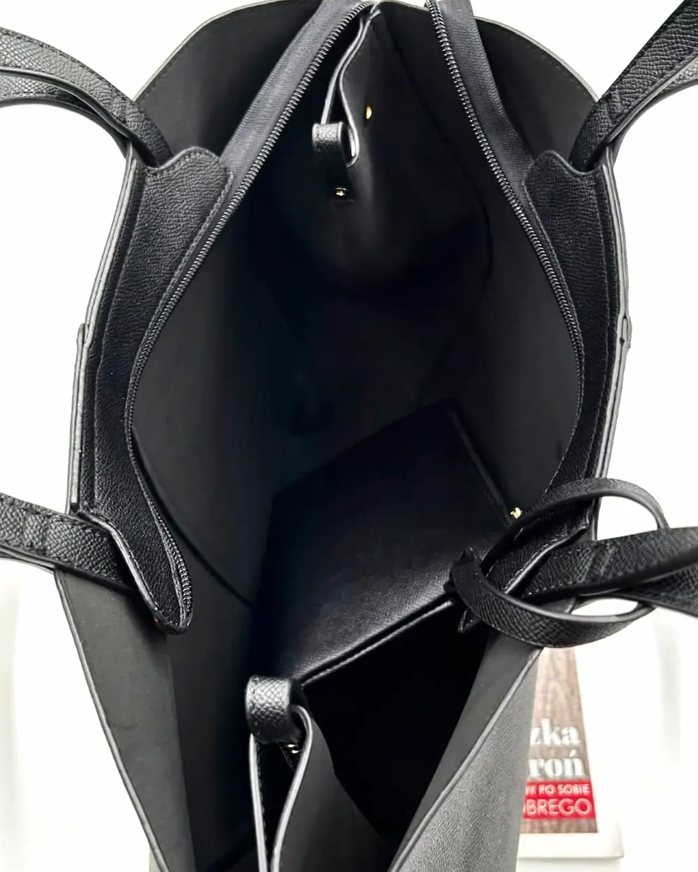 Torebka posiada duży, przestronny środek, który bez problemu mieści format A4, dokumenty, notes, kosmetyczkę czy zakupy. To idealna propozycja dla kobiet pracujących, studentek oraz wszystkich, które cenią sobie wygodę i funkcjonalność.