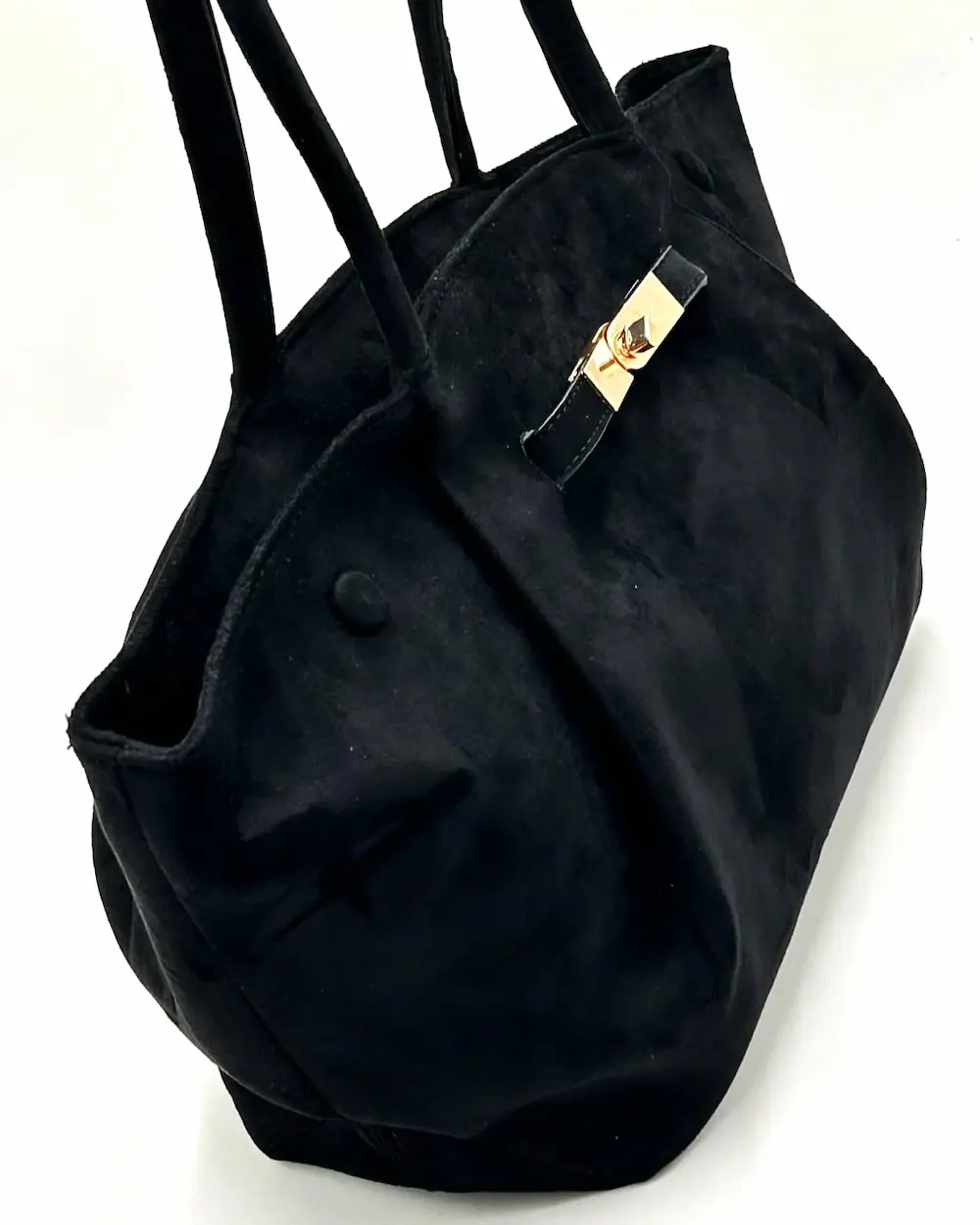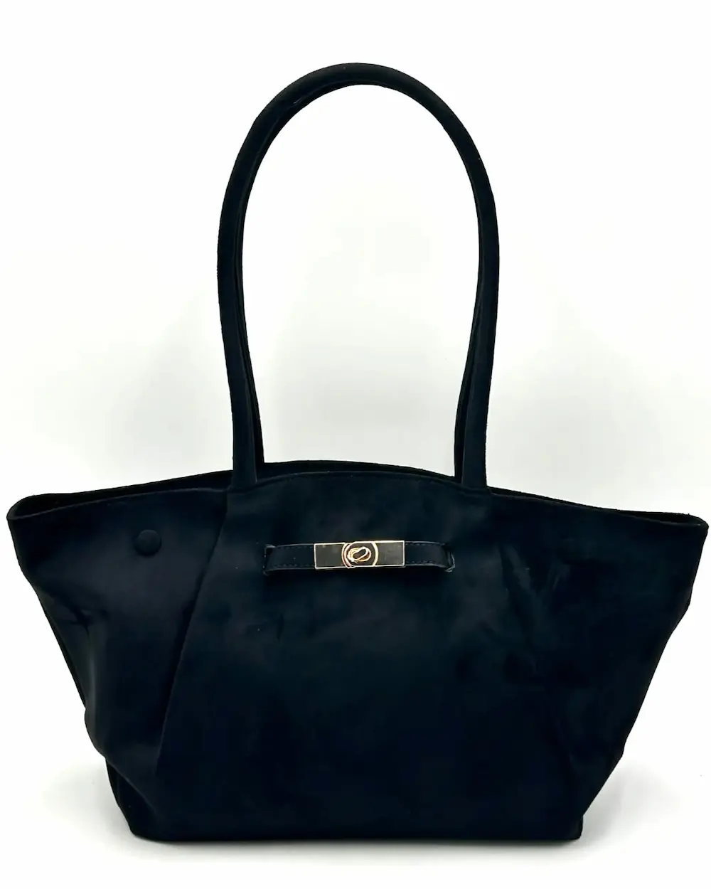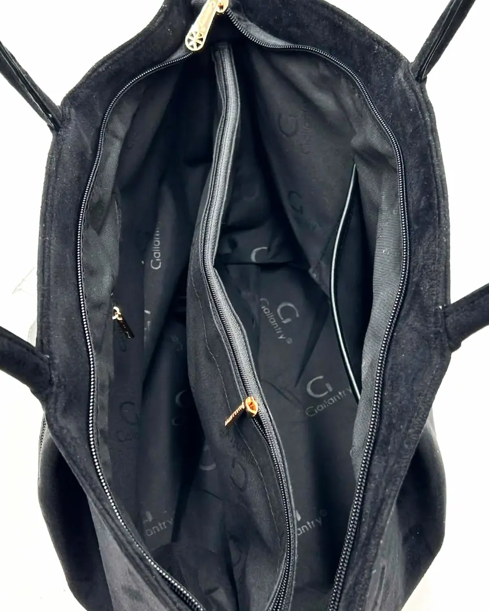 Gallantry Paris damska torebka shopperka czarna z ekozamszu – elegancka średnia torebka z wysokimi uchwytami