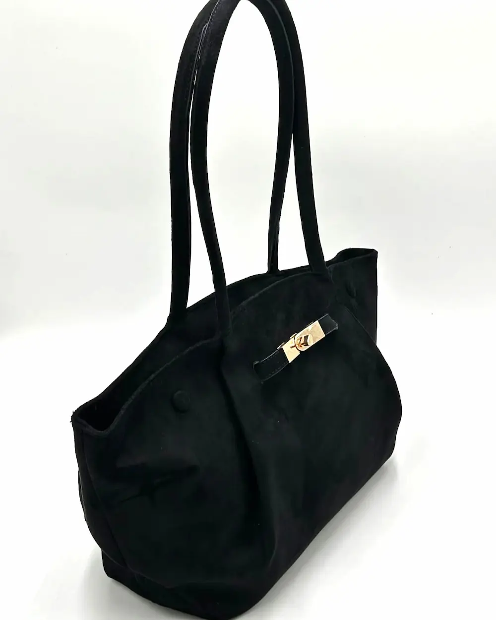 Czarna damska torebka shopperka Gallantry Paris to połączenie elegancji, funkcjonalności i wygody użytkowania. Wykonana z wysokiej jakości ekozamszu, wyróżnia się miękką strukturą, modnym designem oraz złotymi okuciami, które dodają jej luksusowego charakteru. To model idealny dla kobiet, które poszukują stylowej i praktycznej torebki na co dzień, do pracy, szkoły lub na spotkania.