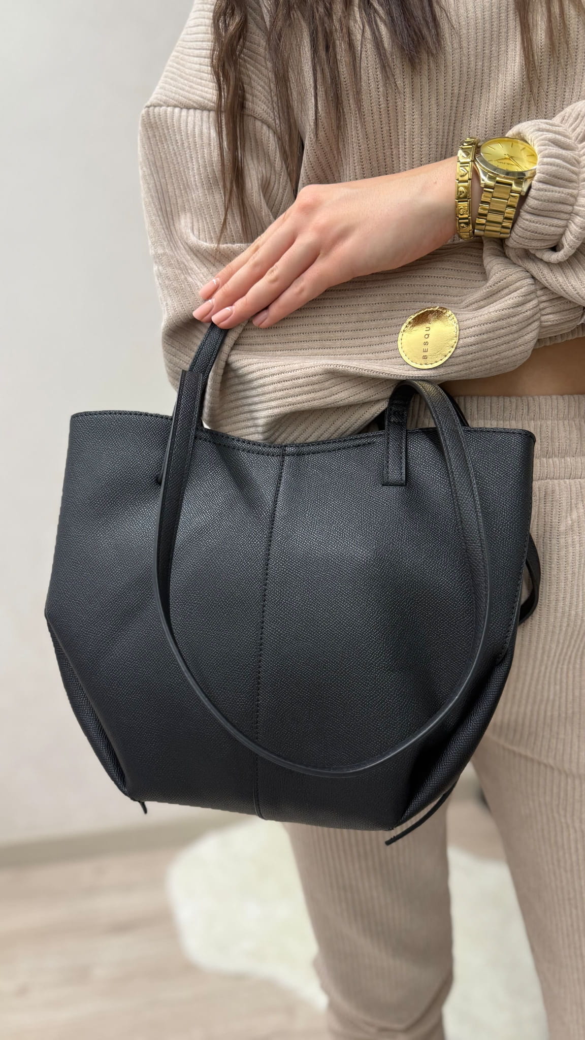 Czarna shopperka Gallantry Paris to model, który nigdy nie wychodzi z mody. Klasyczny kolor sprawia, że torebka pasuje do każdej stylizacji – od codziennych zestawów po bardziej eleganckie outfity do pracy czy na spotkania.