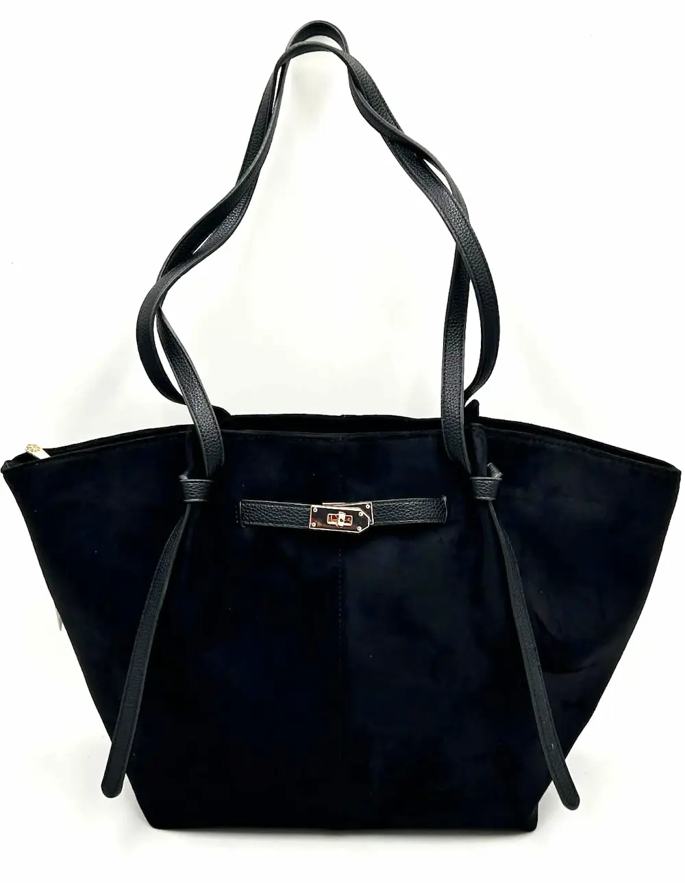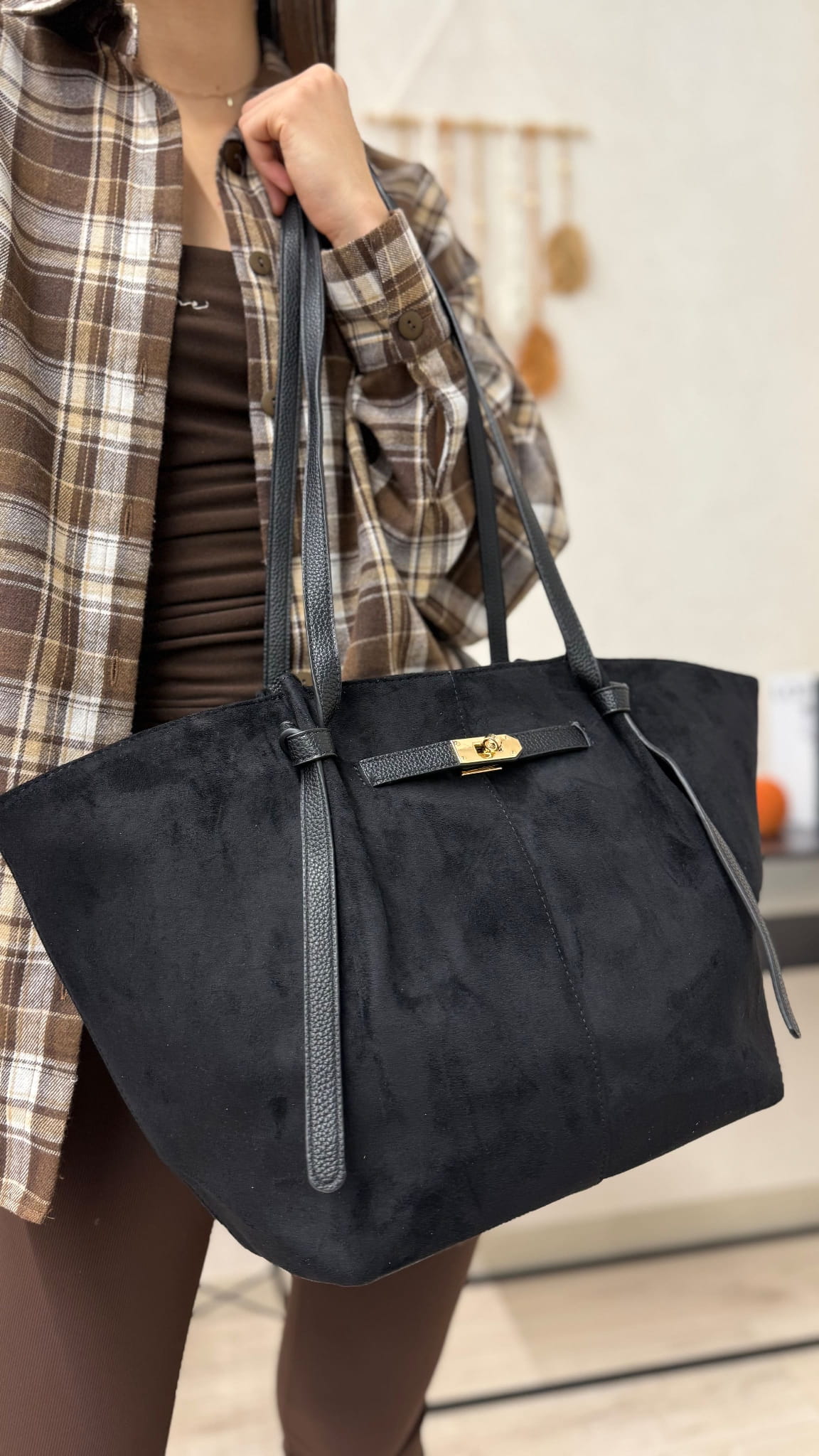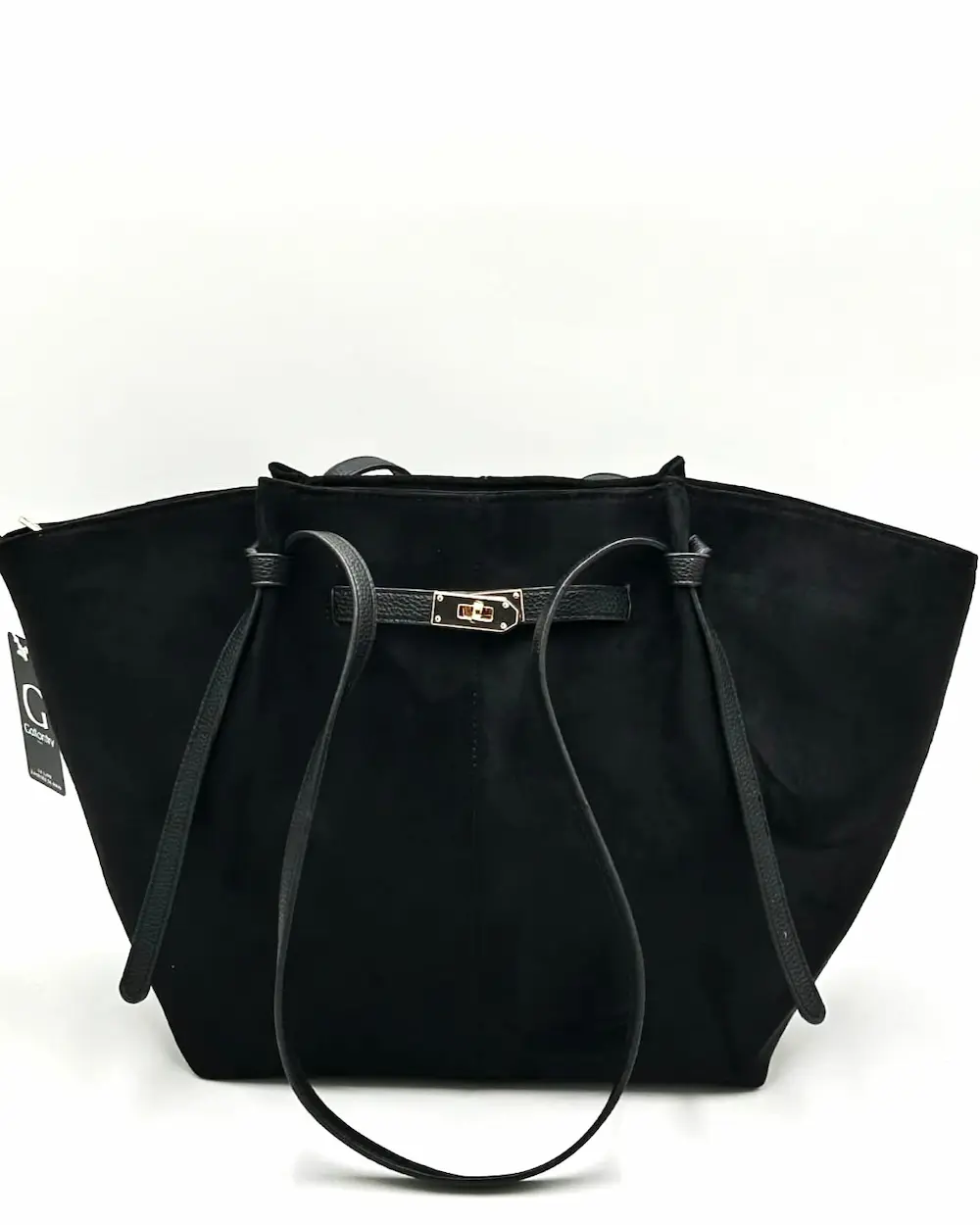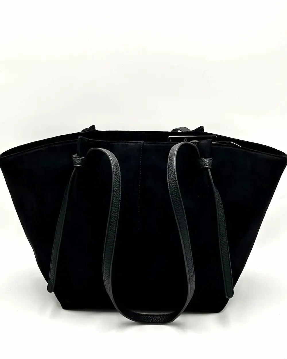 Czarna shopperka Gallantry Paris – pojemna torebka na ramię z zamszu ekologicznego