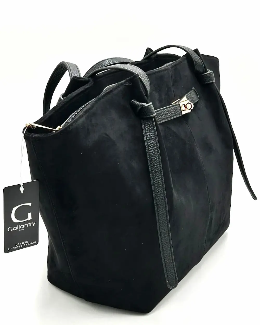 Stylowa damska torebka shopperka Gallantry Paris to model, który łączy elegancję, wygodę i praktyczność na każdy dzień. Wykonana z miękkiego, przyjemnego w dotyku zamszu ekologicznego w klasycznym czarnym kolorze będzie doskonałym uzupełnieniem wielu stylizacji – od casualowych po bardziej eleganckie.