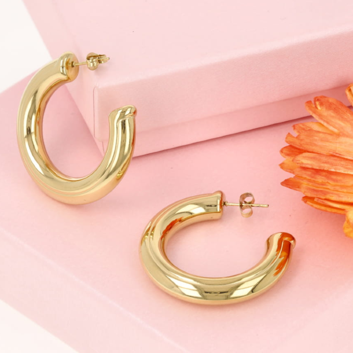 Dmuchane kolczyki koła złote o średnicy 4 cm to połączenie eleganckiego wyglądu i codziennego komfortu. Wykonane z wysokogatunkowej stali nierdzewnej 316L, zachowują piękny złoty kolor i nie ulegają korozji. Dzięki technologii „dmuchanej formy” kolczyki mają efektowną objętość, a przy tym są zaskakująco lekkie. Zapięcie na sztyft sprawia, że dobrze trzymają się ucha i są wygodne w noszeniu przez cały dzień. To model dla kobiet, które cenią subtelną ekstrawagancję w przystępnej cenie.