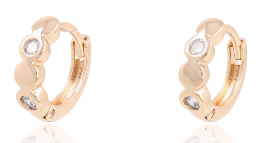 Kolczyki kółeczka z cyrkoniami – miedź rodowana pozłacana 18k
