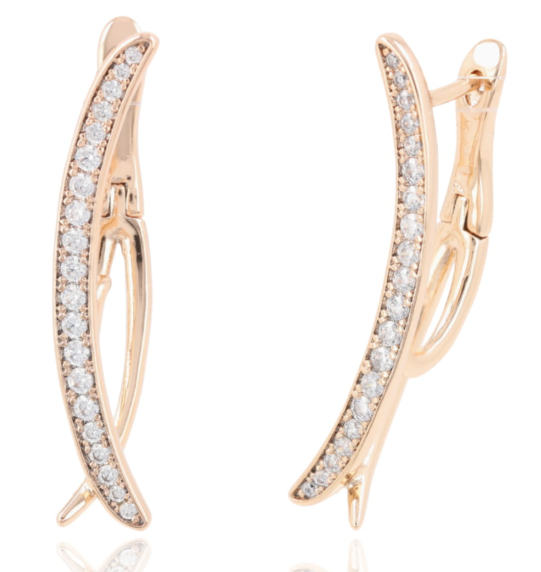 Kolczyki łuk z cyrkoniami – miedź rodowana pozłacana 18k