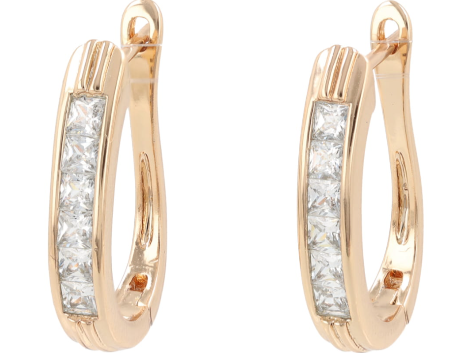 Kolczyki owalne z cyrkoniami – miedź rodowana, pozłacana 18k