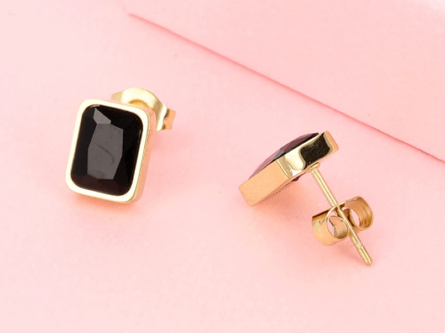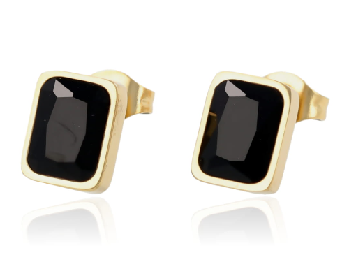Kolczyki złote stal chirurgiczna wkrętki z czarnym kryształkiem – elegancja na co dzień i od święta
