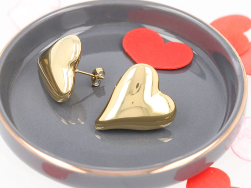 Kolczyki złote ze stali szlachetnej z dmuchanym sercem – subtelna elegancja na co dzień