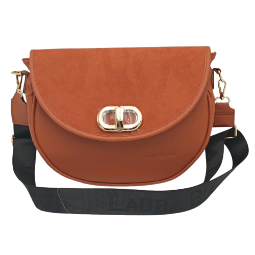 Camelowa Elegancja – Listonoszka Laura Biaggi z Klapką i Zamszowym Akcentem