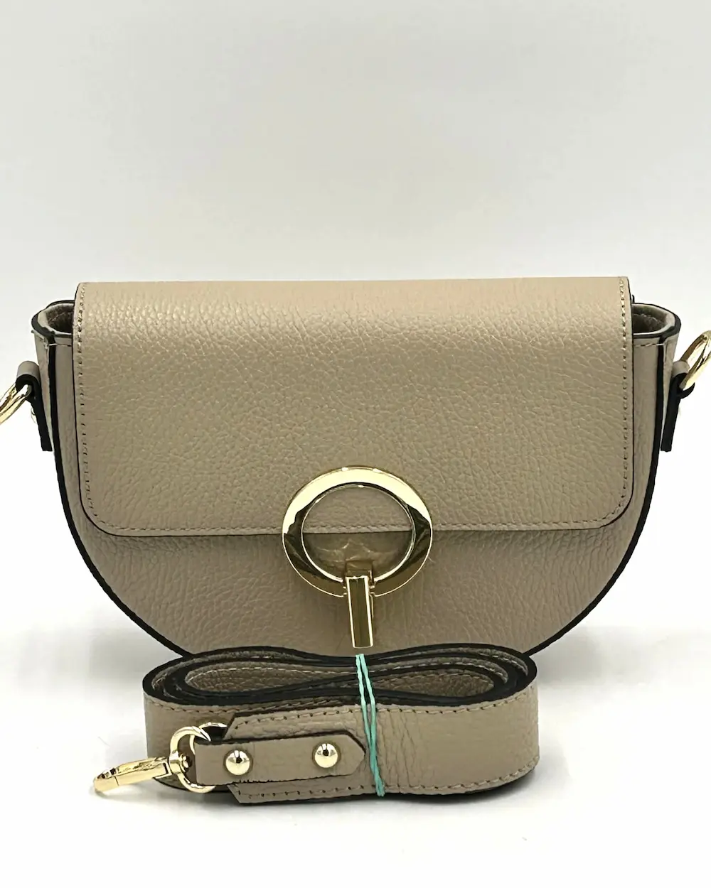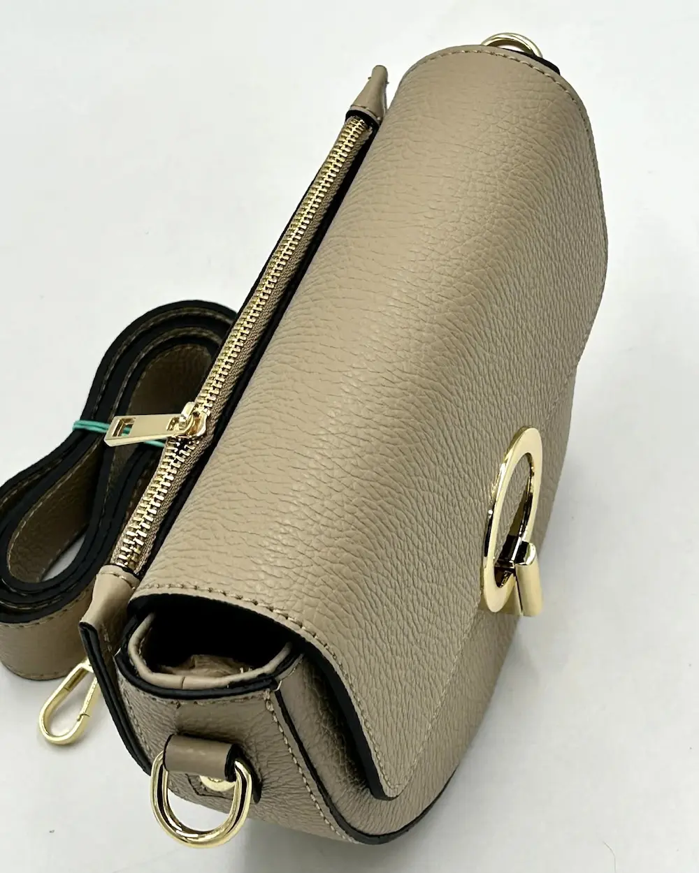 Beżowa mini listonoszka Laura Biaggi ze skóry naturalnej – elegancja na co dzień