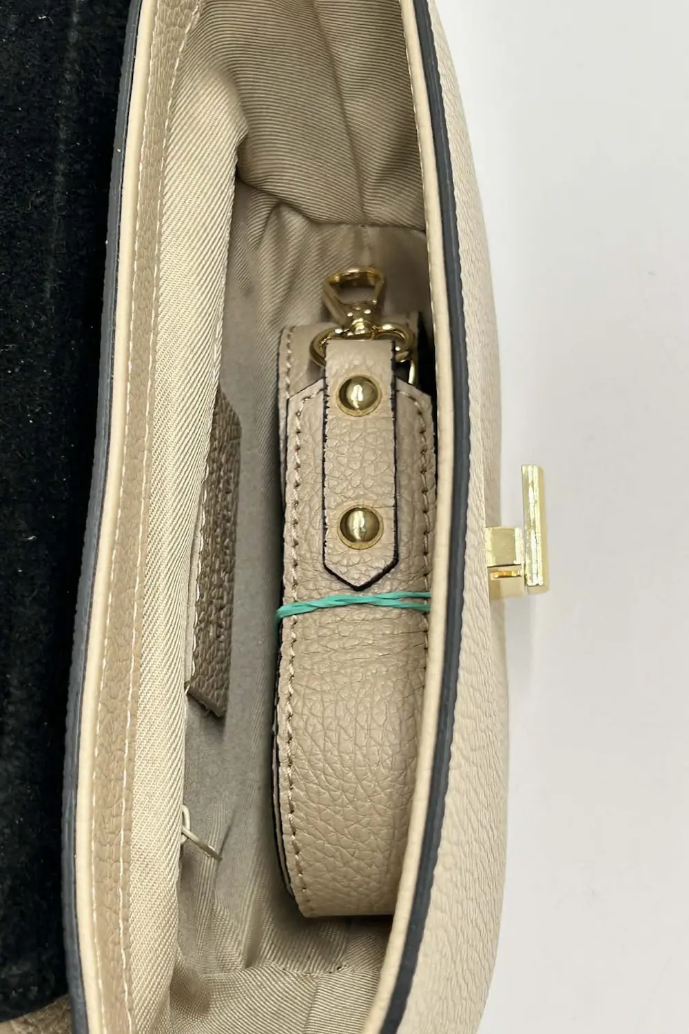 Model zamykany jest na klapkę, która dodaje mu eleganckiego charakteru. Z przodu znajduje się efektowne ozdobne złote zapięcie, które pełni funkcję stylowego akcentu i podkreśla premium wygląd torebki.