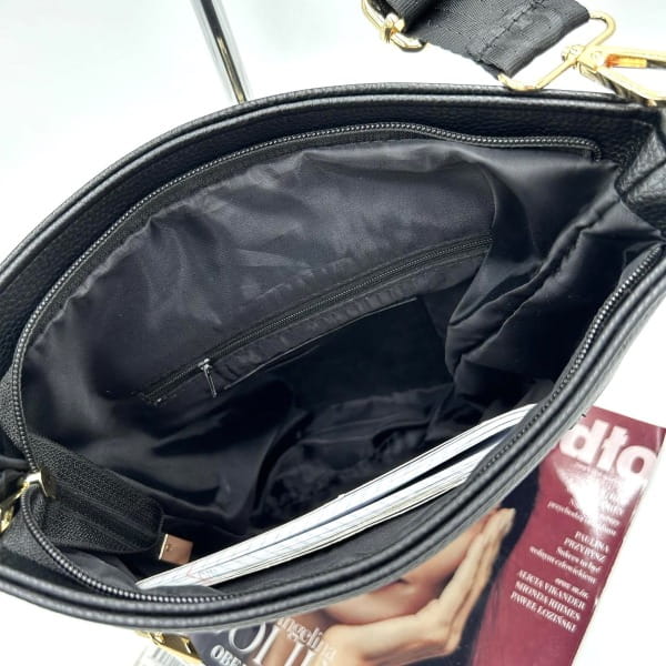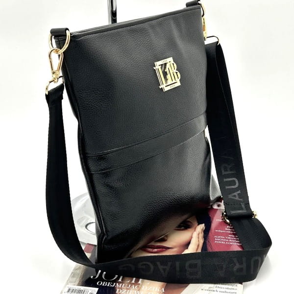Torebka listonoszka marki Laura Biaggi w klasycznej czerni to propozycja dla kobiet ceniących styl i funkcjonalność. Model wykonany z wysokiej jakości skóry ekologicznej o matowym wykończeniu, wzbogacony o kieszonkę z delikatnym połyskiem, tworzy spójne, nowoczesne zestawienie.