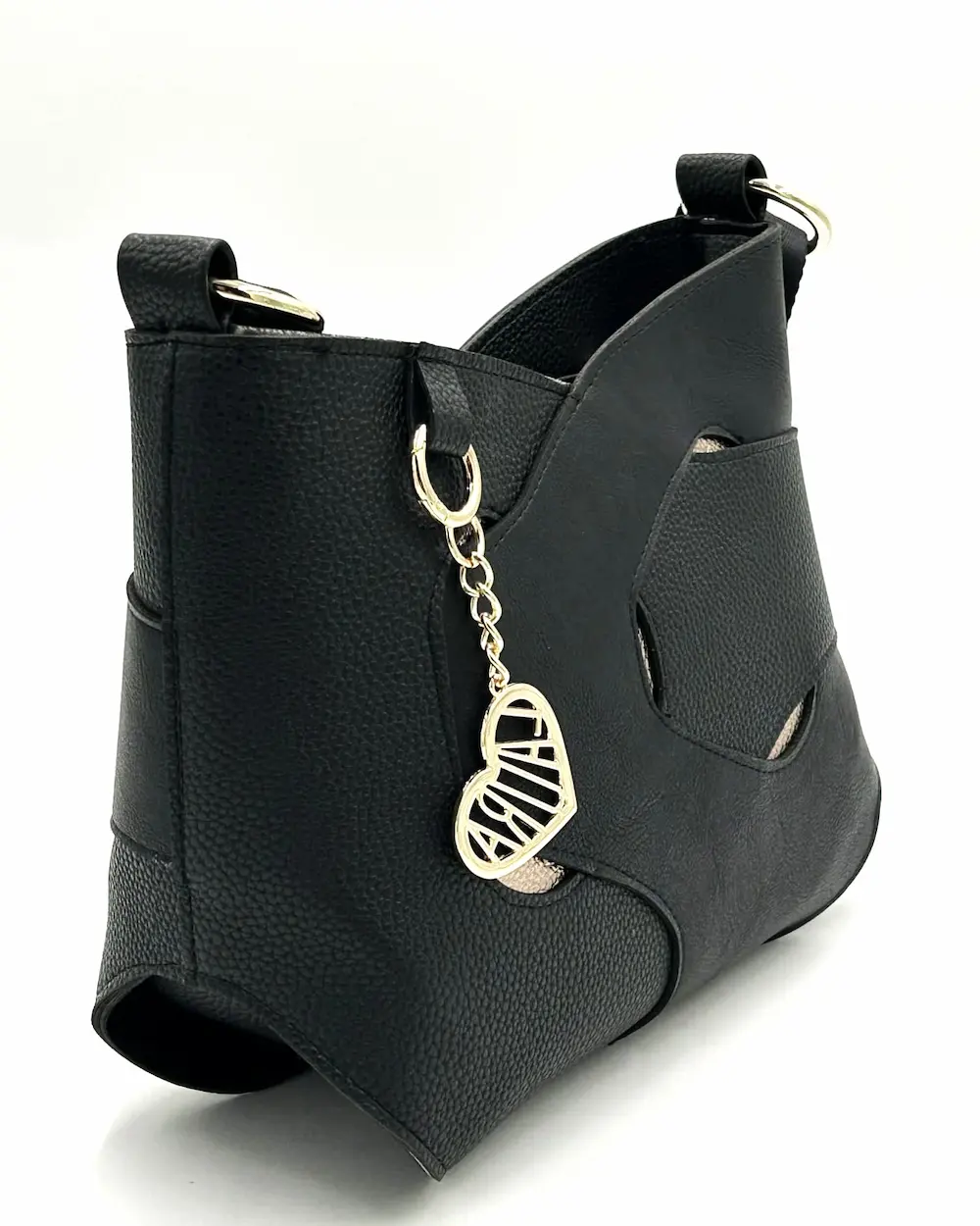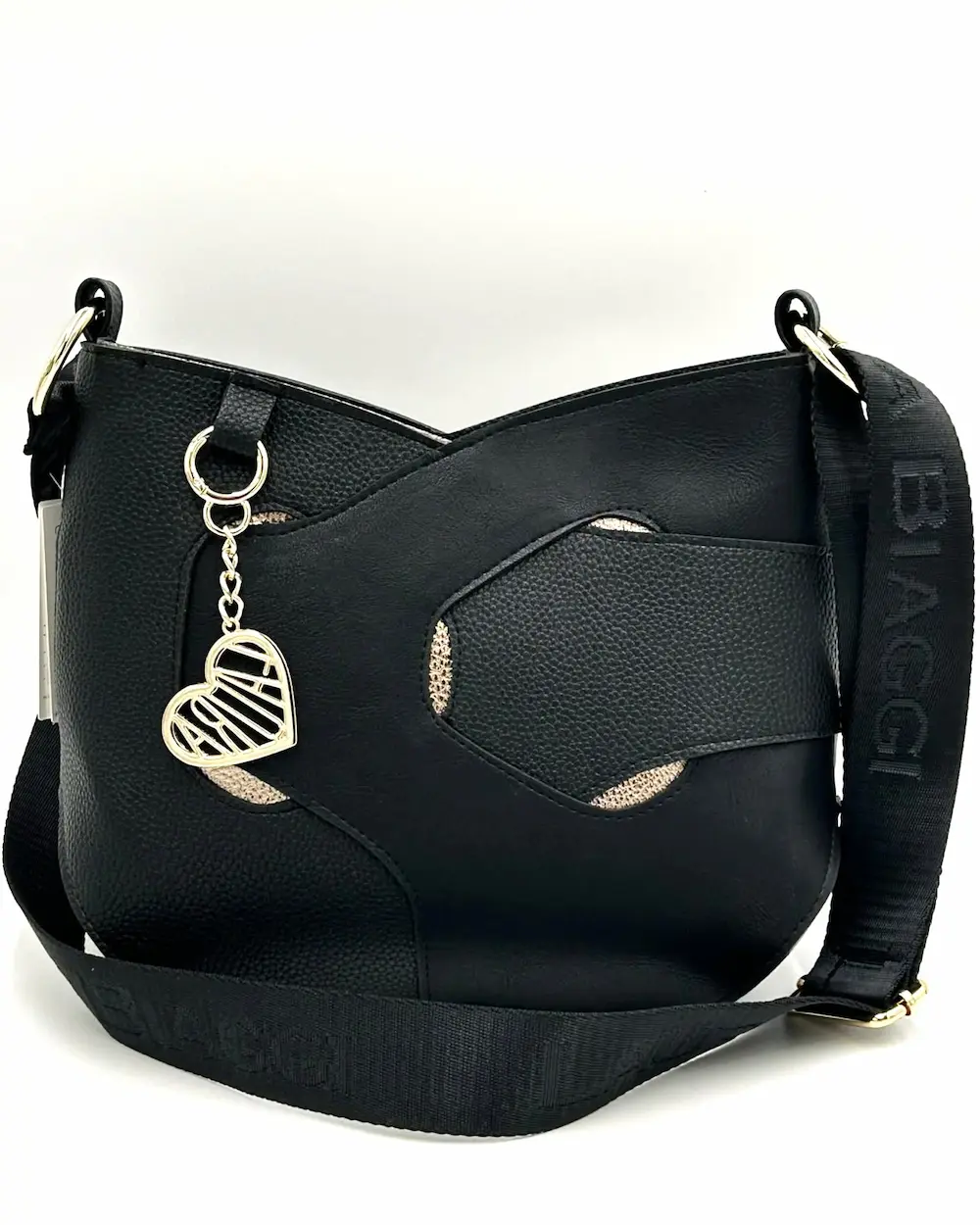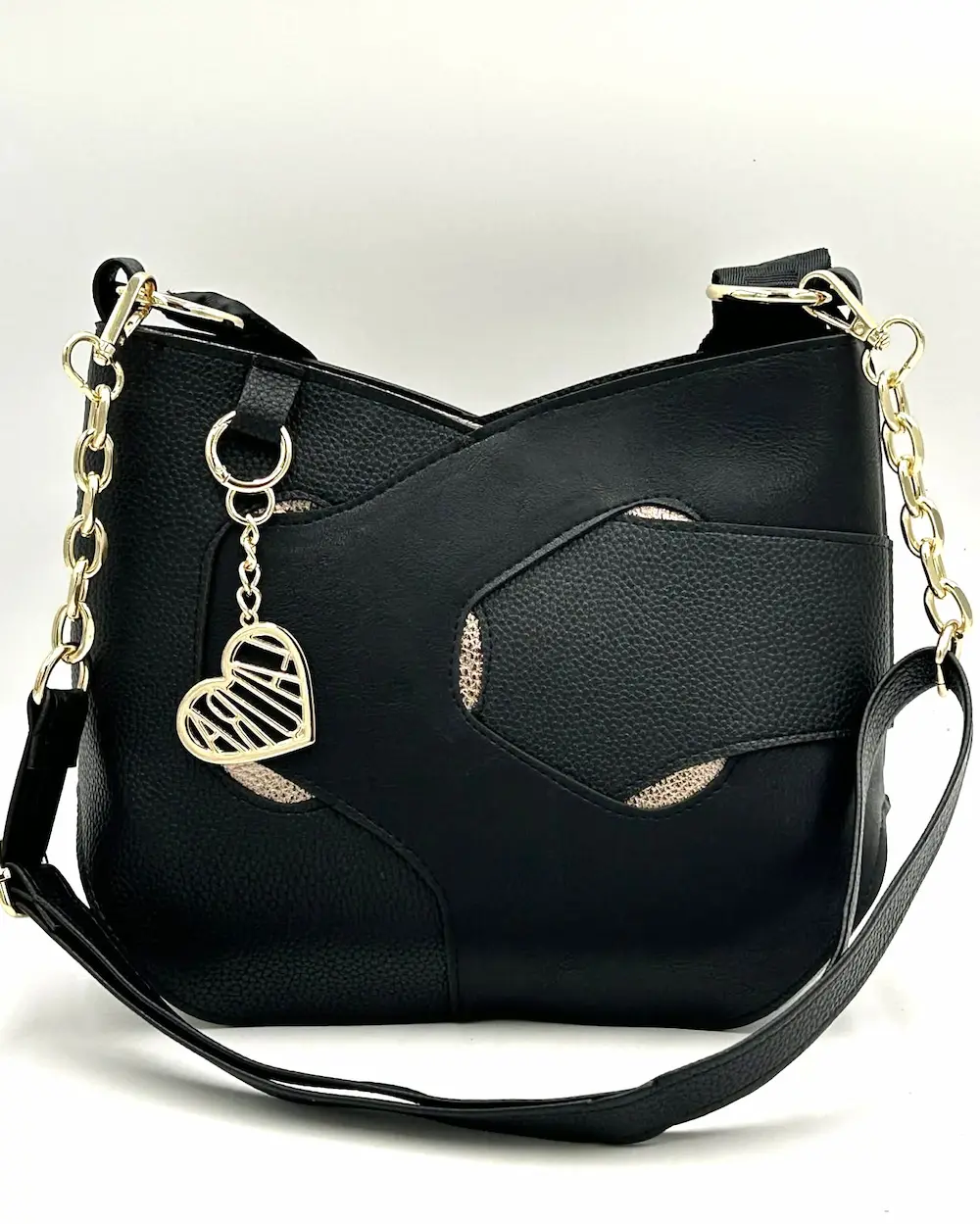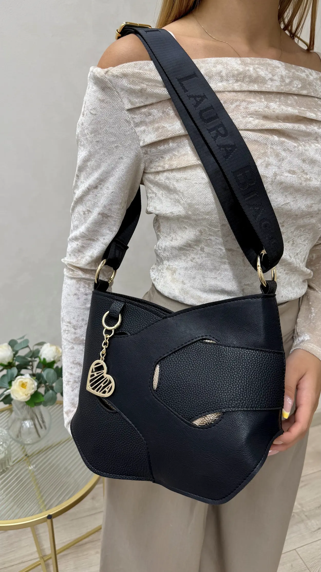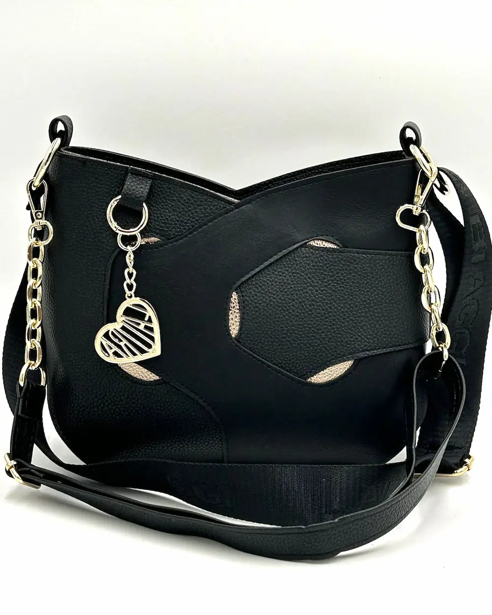 Laura Biaggi – elegancka czarna torebka listonoszka z ozdobnymi detalami