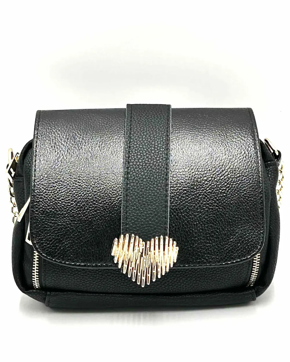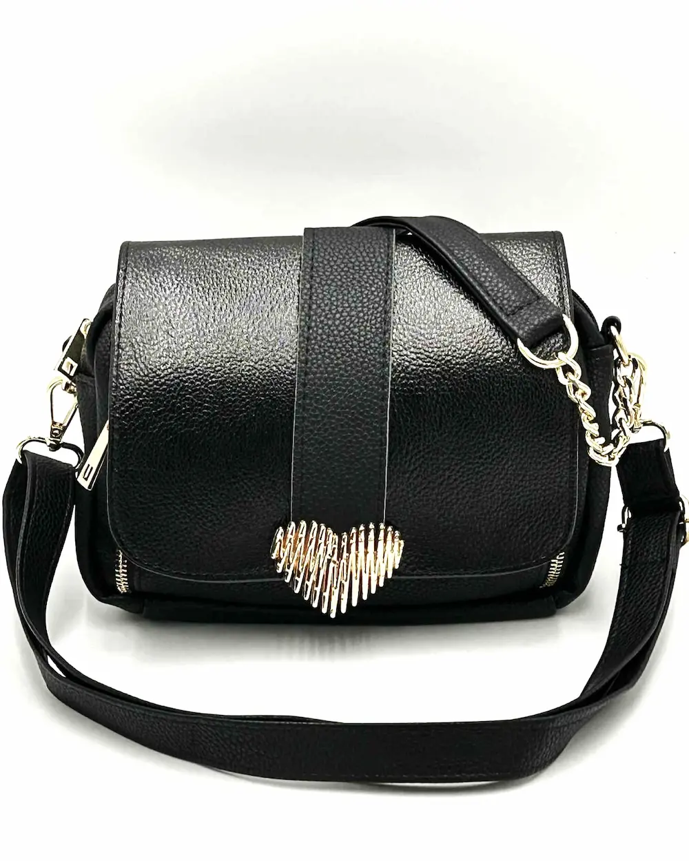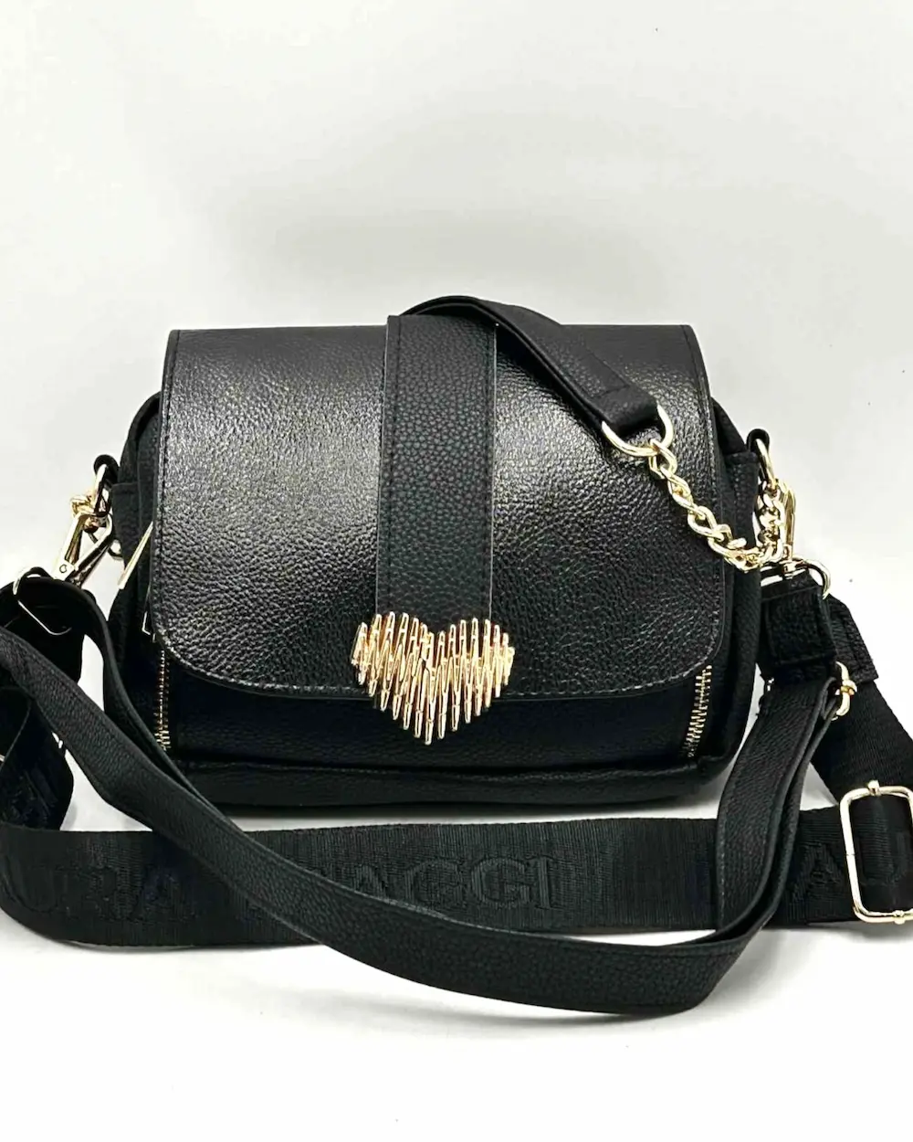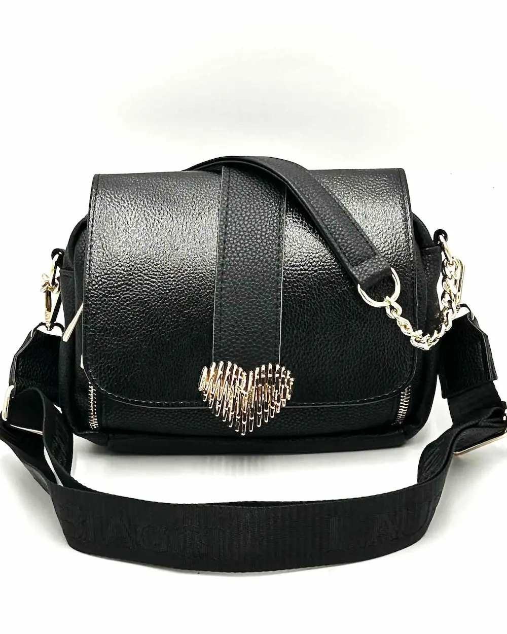 Czarna torebka listonoszka z serduszkiem Laura Biaggi – klasyka i elegancja w nowoczesnej formie