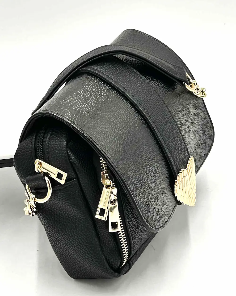 Złote okucia i serduszko pięknie kontrastują z czernią, dodając całości eleganckiego charakteru.