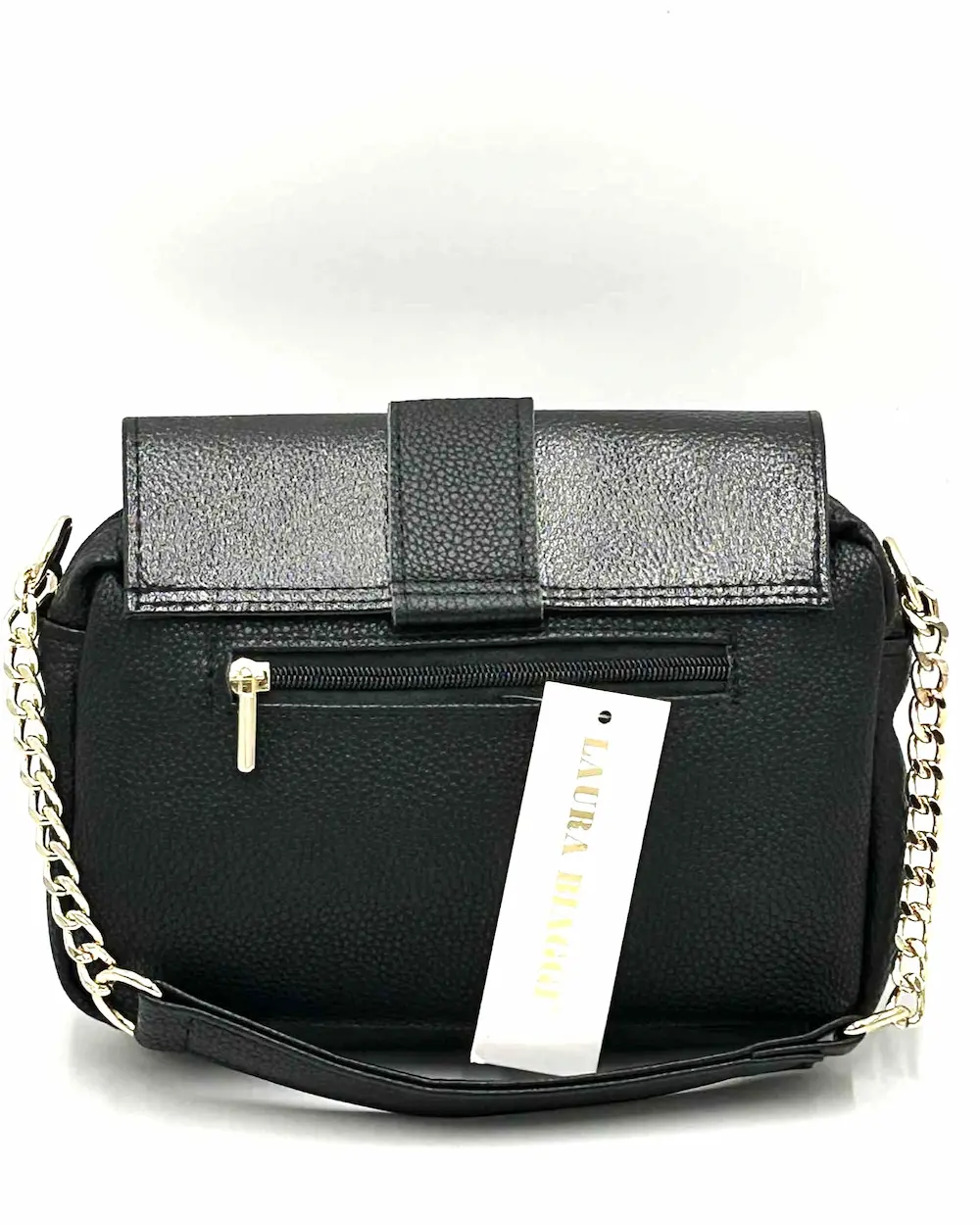 Laura Biaggi damska torebka listonoszka czarna z połyskującą klapką z serduszkiem skóra ekologiczna
