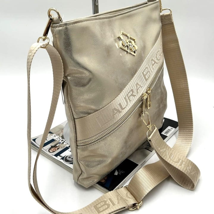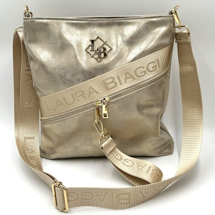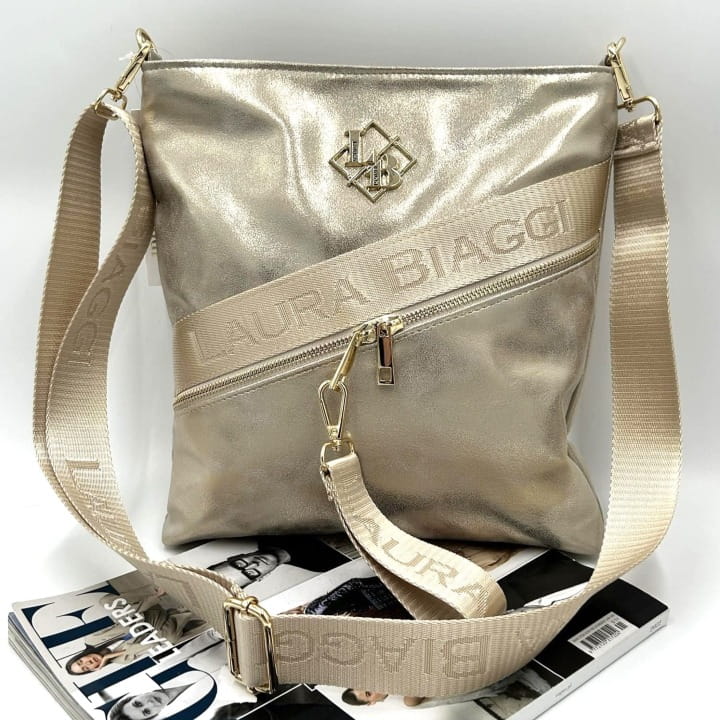 Złota listonoszka Laura Biaggi to doskonałe połączenie nowoczesnej elegancji i funkcjonalności. Wyróżnia się subtelnym połyskiem, wysoką jakością wykonania i dopracowanymi detalami. Idealna jako codzienna torebka na ramię, którą założysz zarówno do casualowej, jak i bardziej eleganckiej stylizacji.