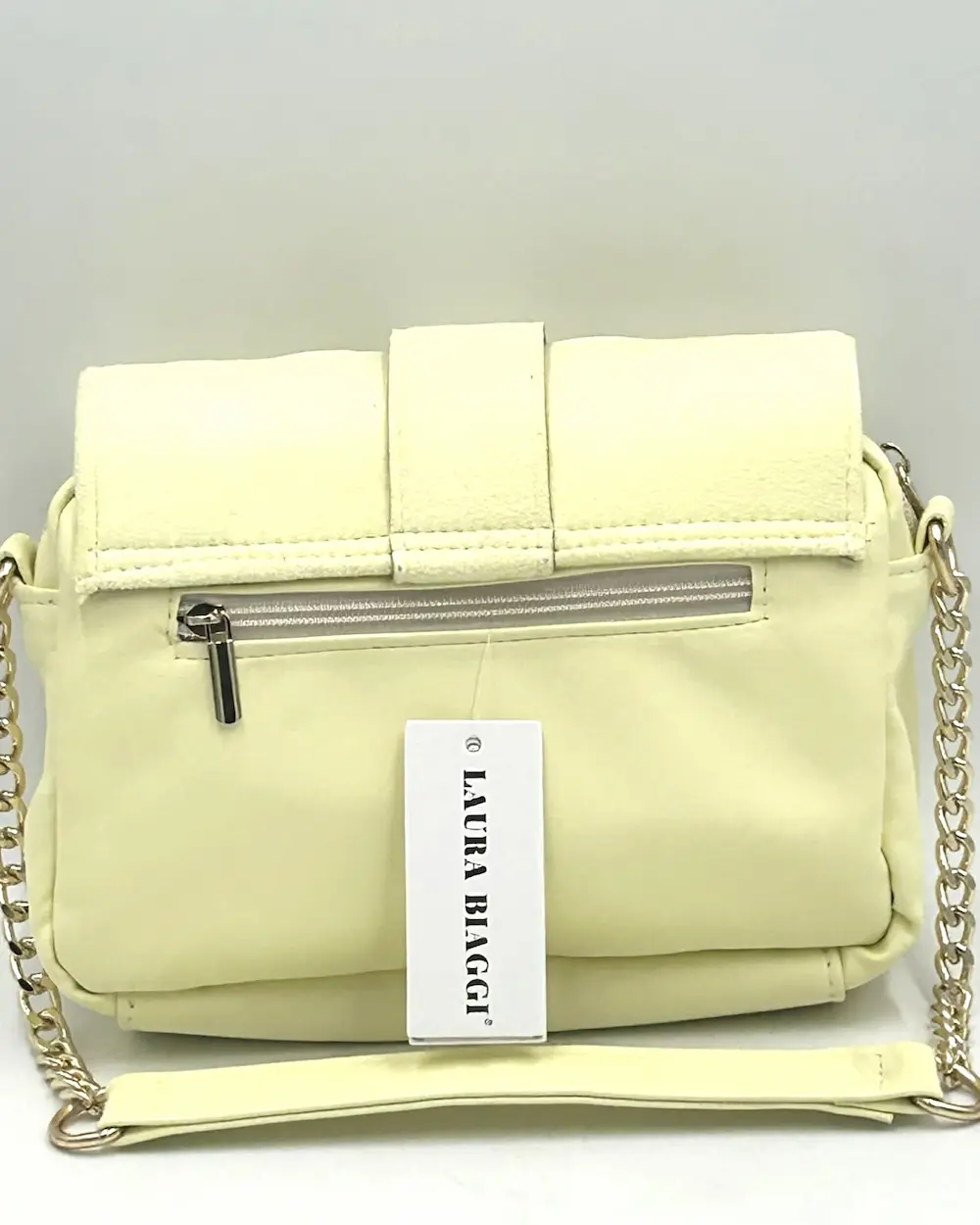 Laura Biaggi damska torebka listonoszka żółta – ekoskóra, zamszowa klapka, 2 paski