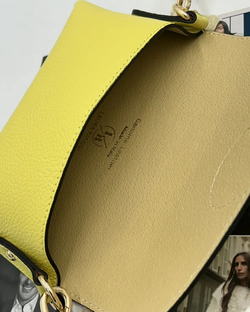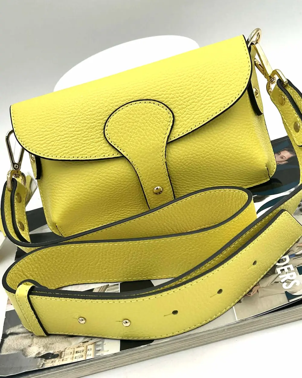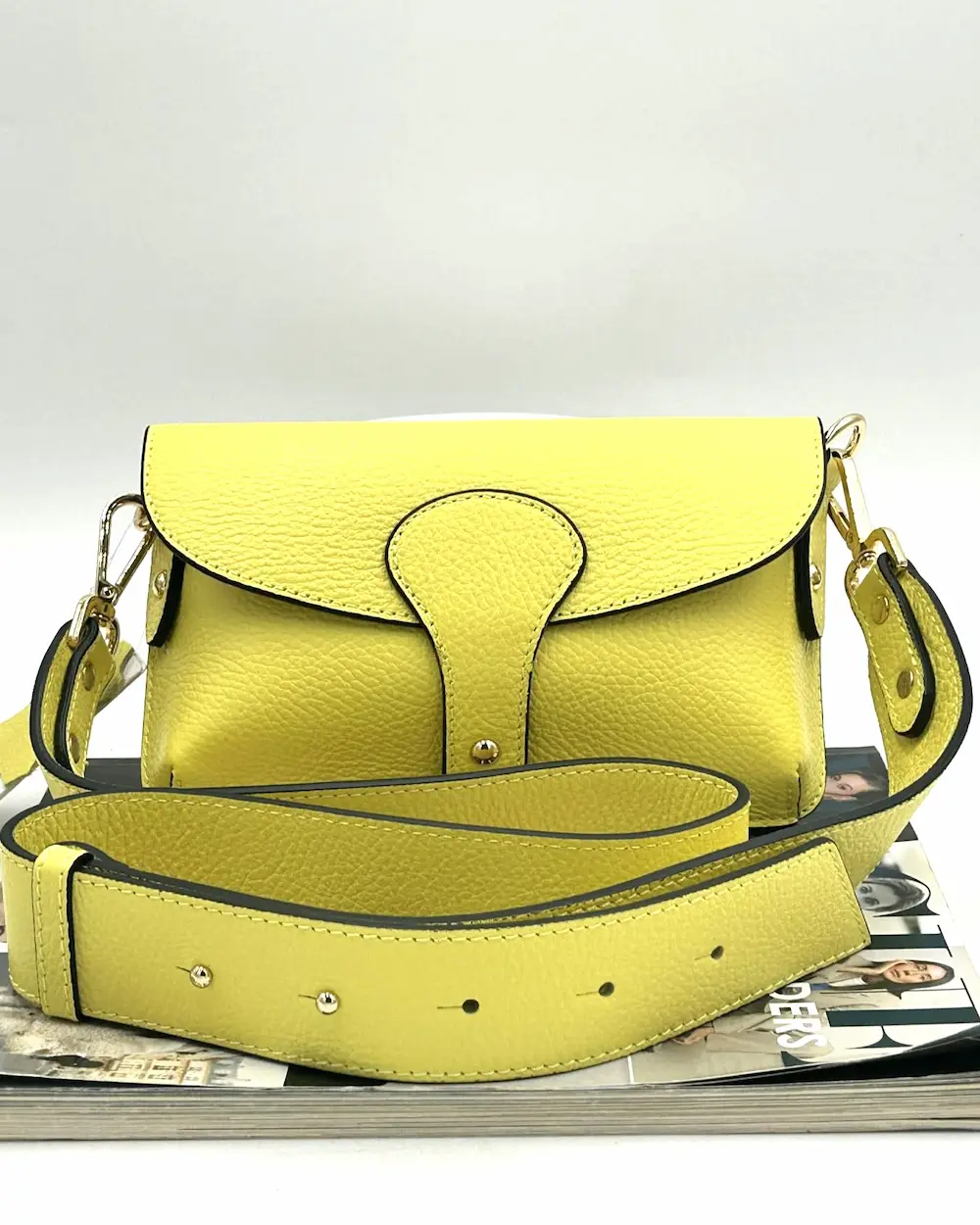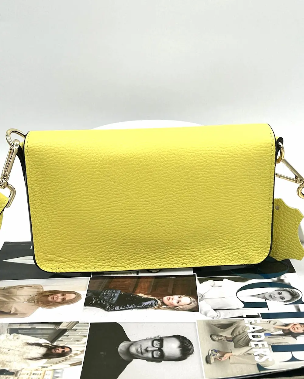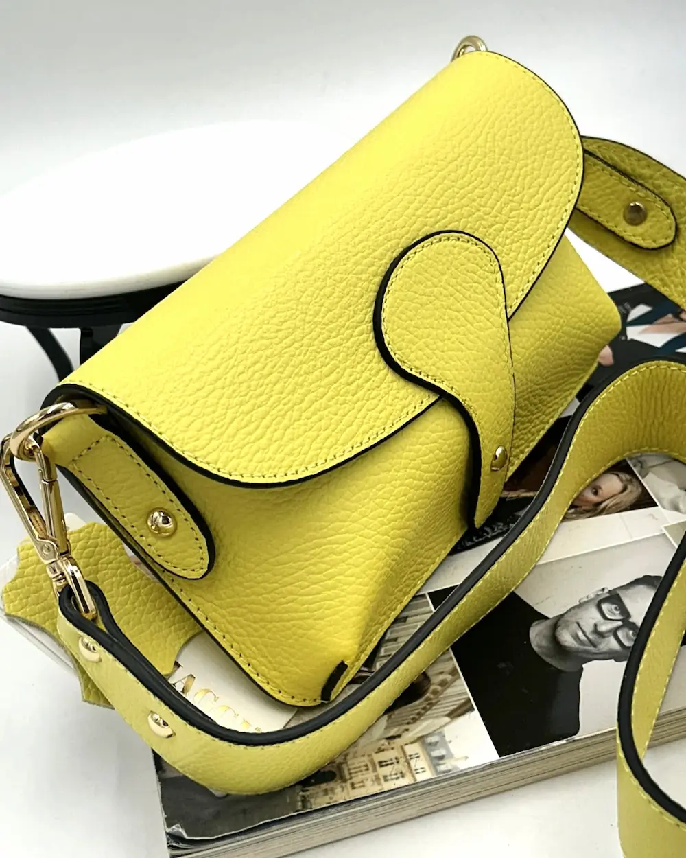 Laura Biaggi damska torebka mini listonoszka żółta – elegancka skóra naturalna