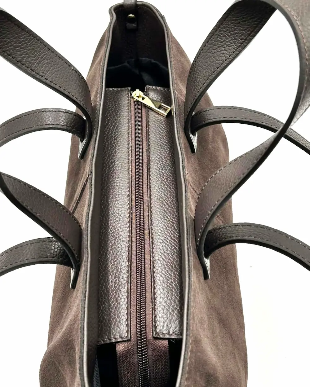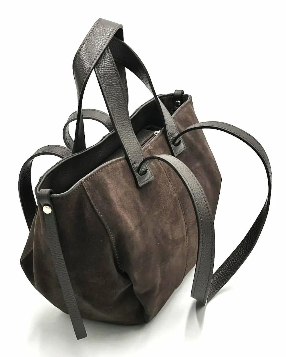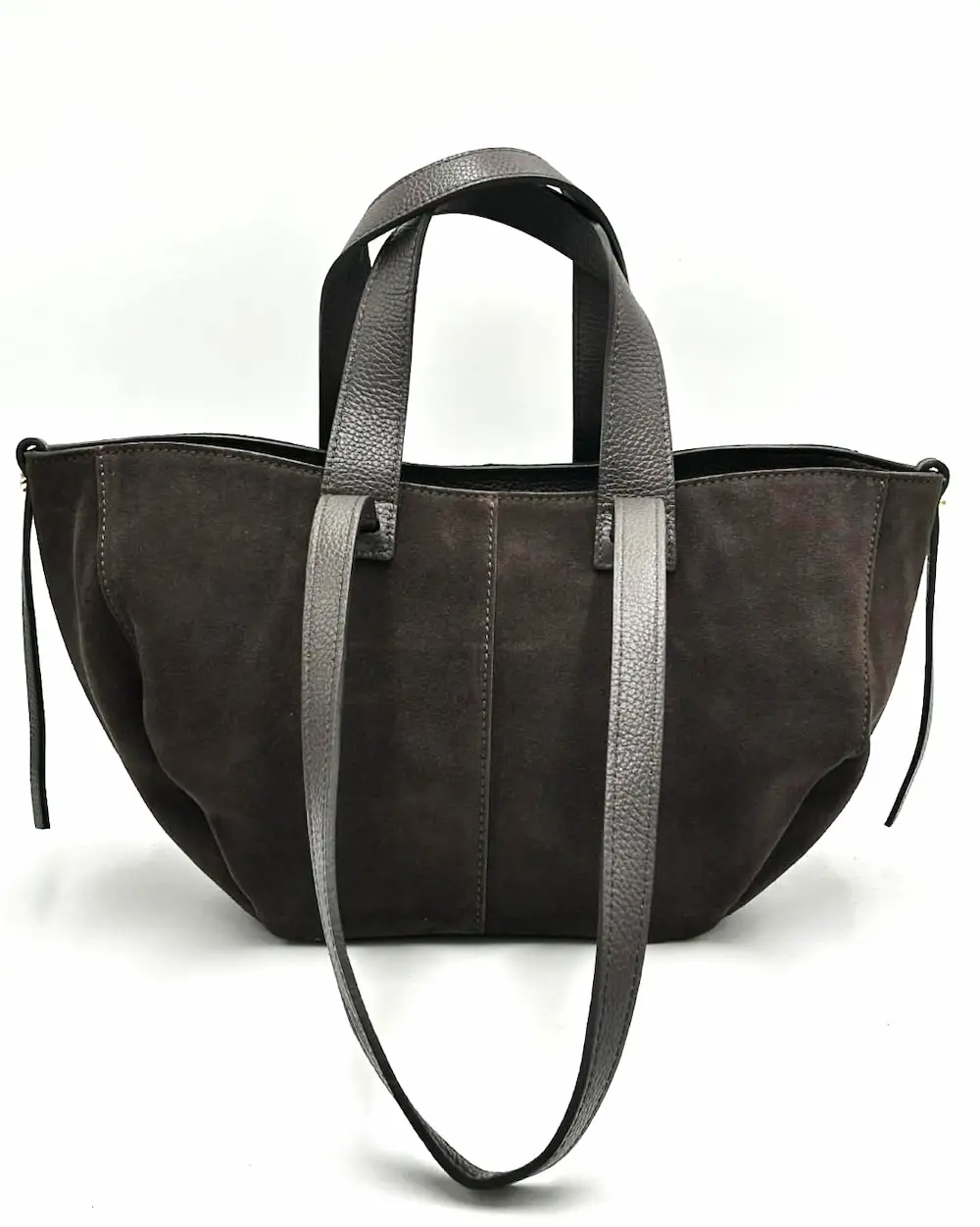 Mini shopperka Laura Biaggi z naturalnego zamszu w kolorze czekoladowego brązu