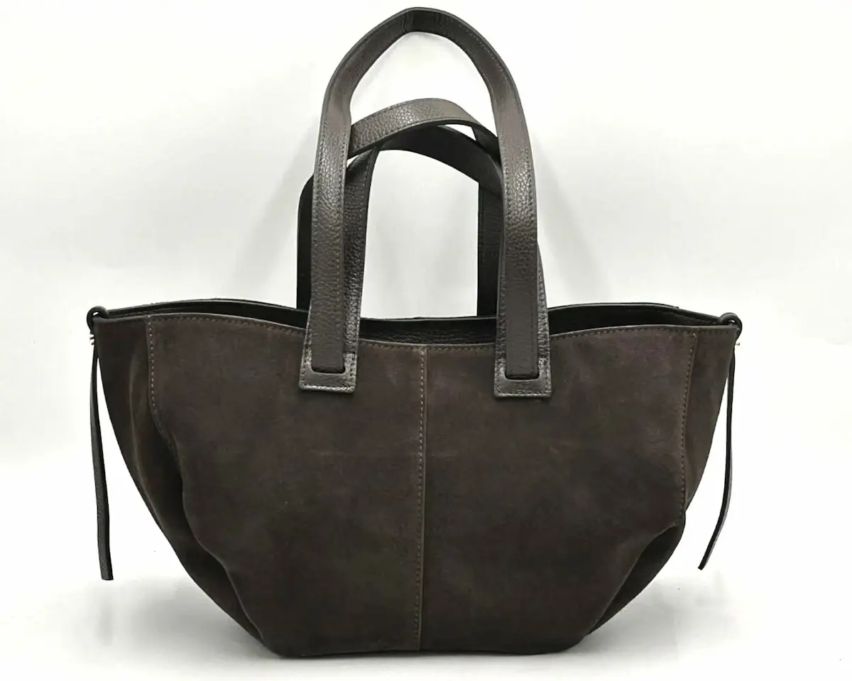 Laura Biaggi damska torebka mini shopperka brązowa – włoski zamsz, format A5