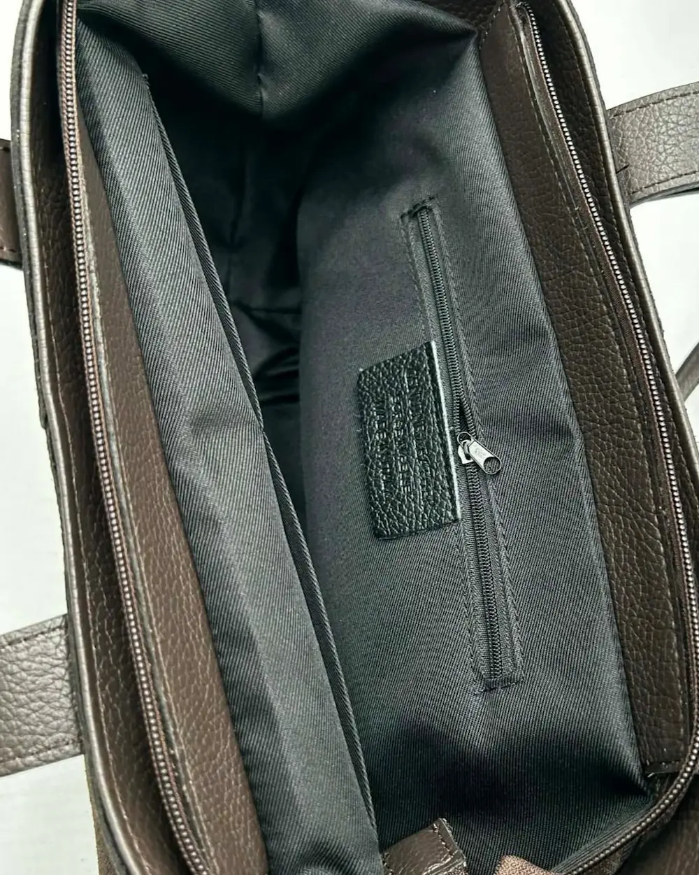 Model jest jednokomorowy, zamykany na zamek błyskawiczny. Wnętrze wykończono czarną podszewką i wyposażono w jedną kieszonkę na suwak oraz dwie małe kieszenie otwarte, idealne na telefon lub drobiazgi.