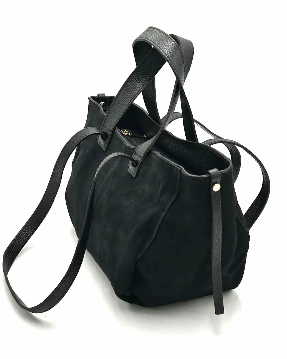 Laura Biaggi damska torebka mini shopperka czarna – włoski zamsz, format A5
