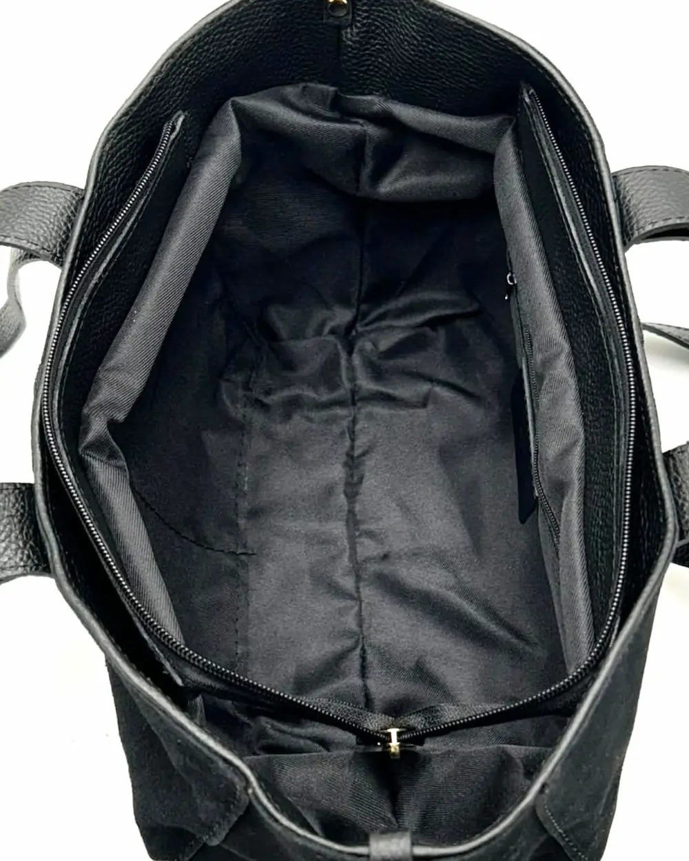 Torebka jest jednokomorowa, zamykana na zamek błyskawiczny. Wnętrze wykończono czarną podszewką, a jego funkcjonalność zwiększają jedna kieszonka zapinana na suwak oraz dwie małe kieszenie otwarte na drobne przedmioty.