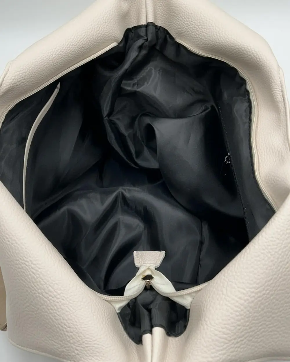 Jasny beż to kolor, który wygląda luksusowo i świeżo przez cały rok – pasuje zarówno do jasnych stylizacji wiosną i latem, jak i do karmelowych, czarnych czy brązowych zestawów jesienią. Złote wstawki i okucia pięknie podkreślają elegancję i sprawiają, że shopperka prezentuje się bardzo „premium”.