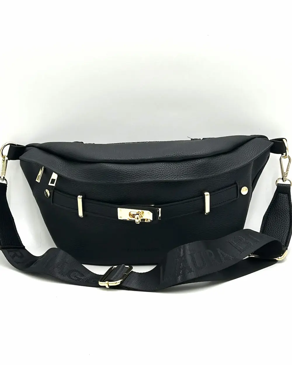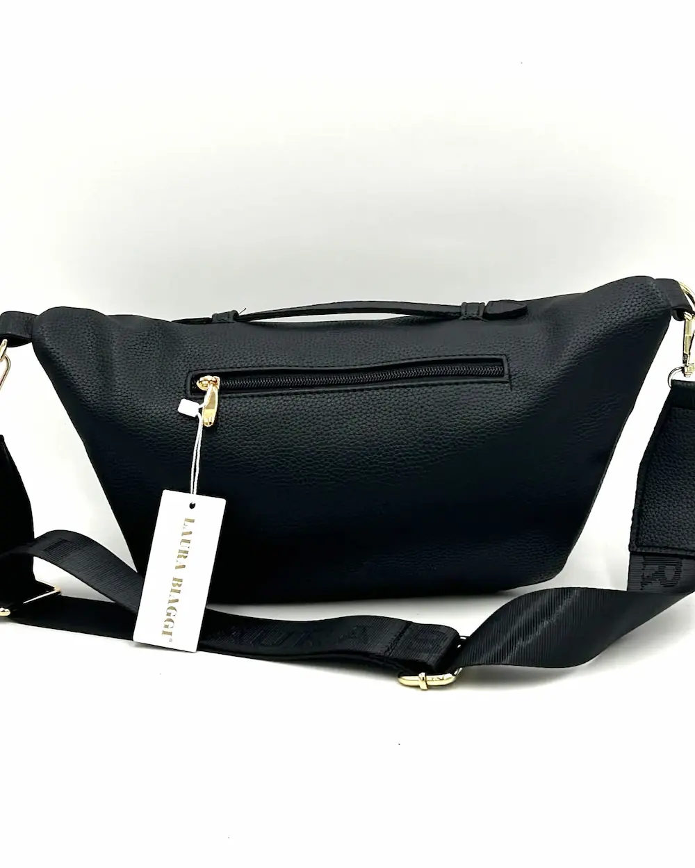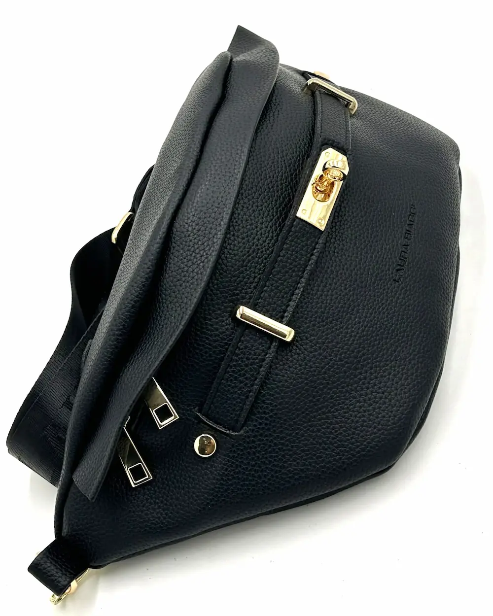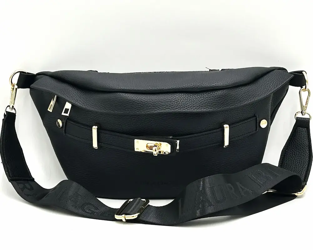 Laura Biaggi damska torebka nerka czarna – elegancka nerka crossbody z logowanym paskiem