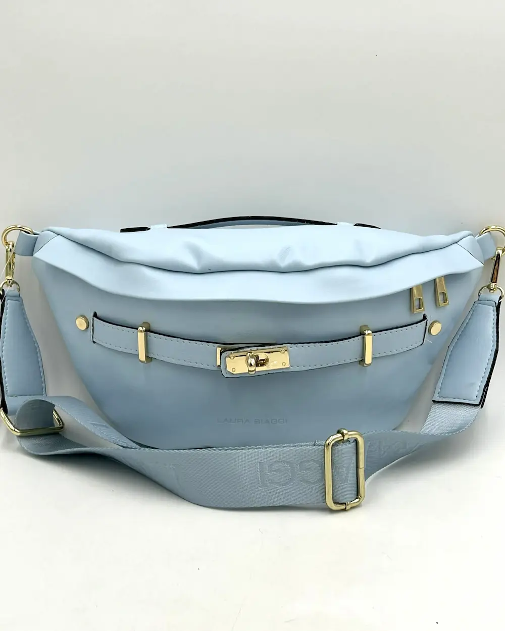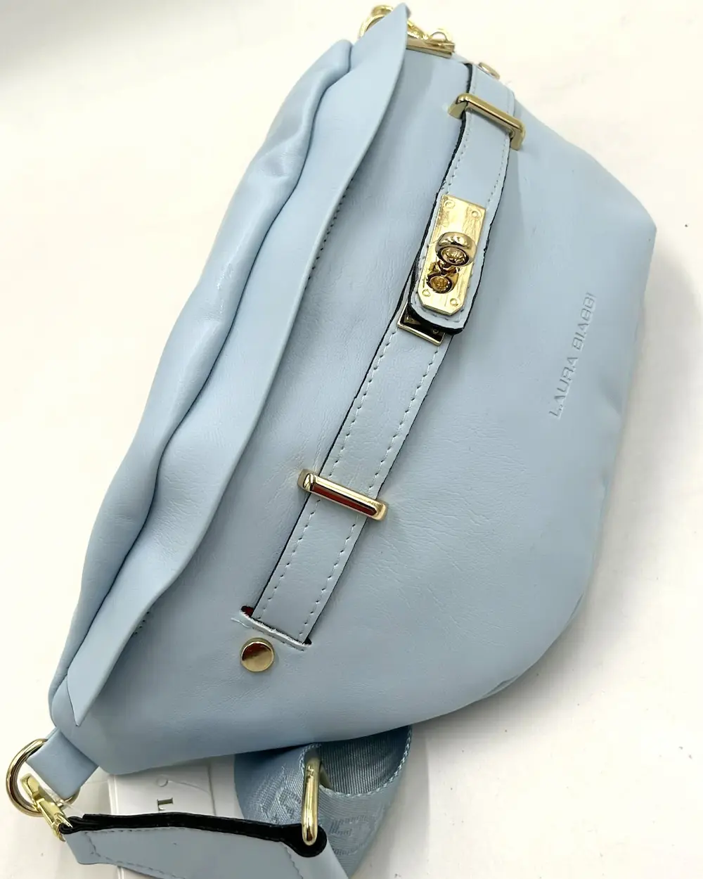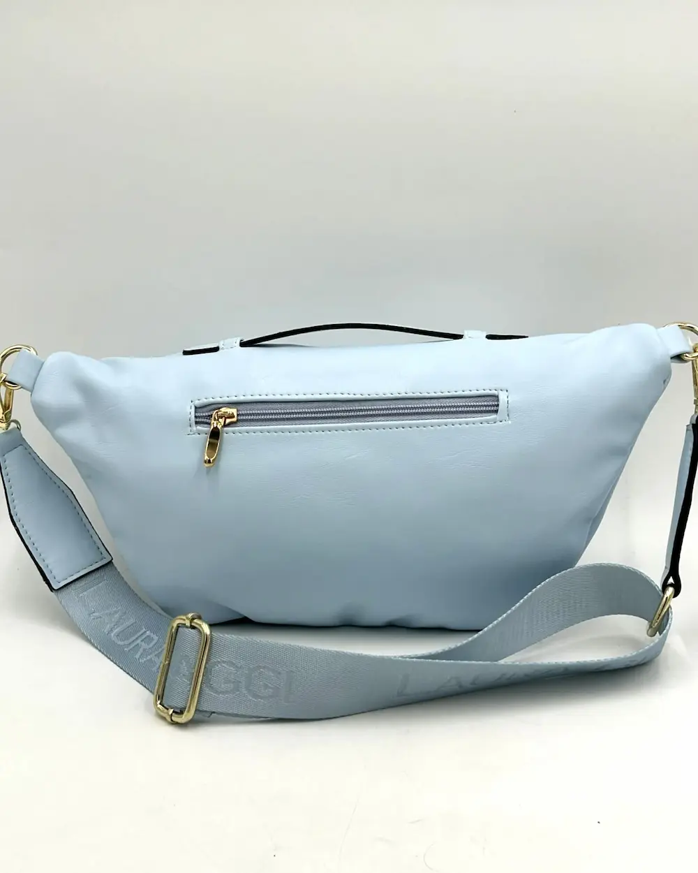 Laura Biaggi damska torebka nerka jasnoniebieska – stylowa nerka z logowanym paskiem