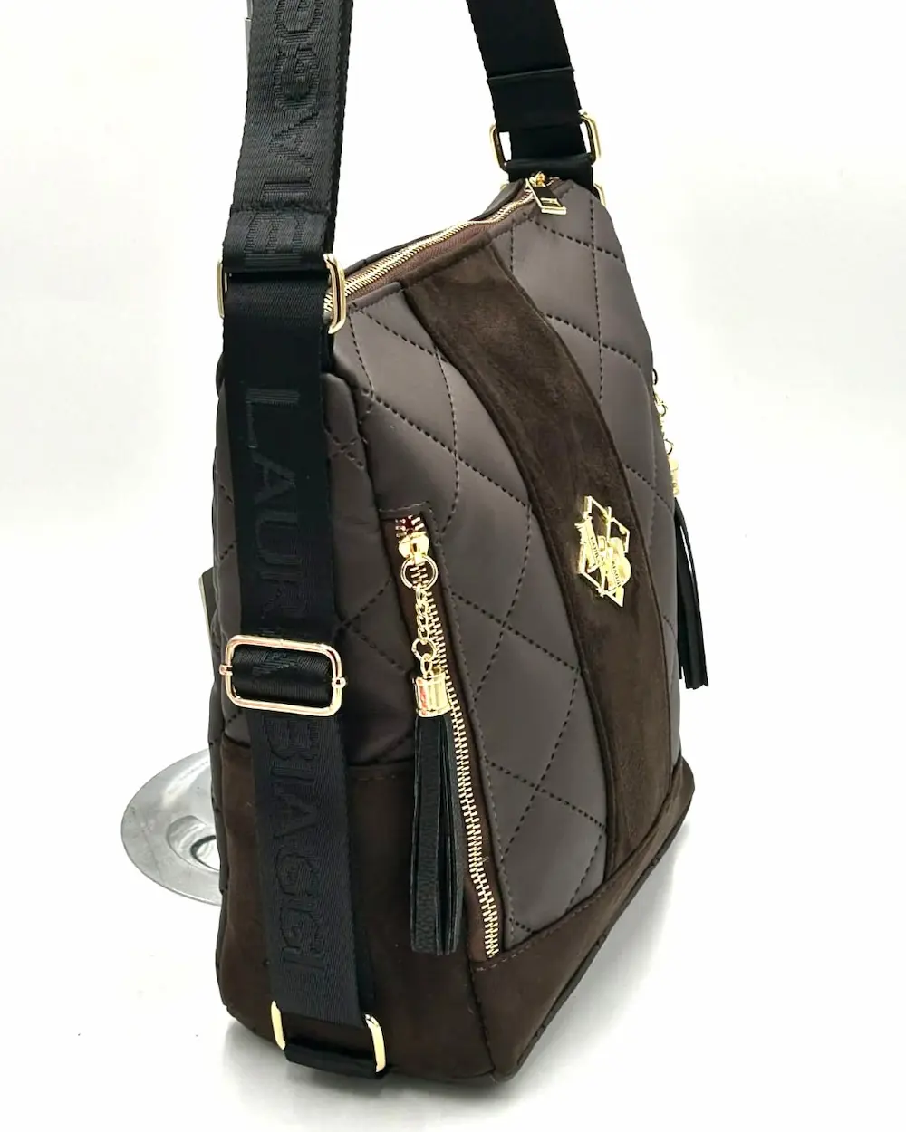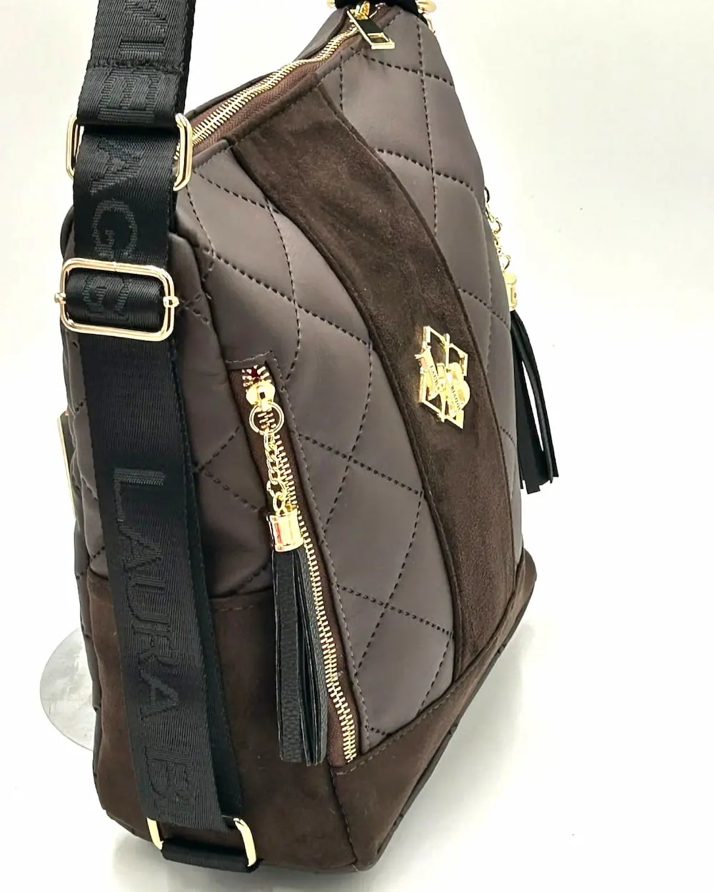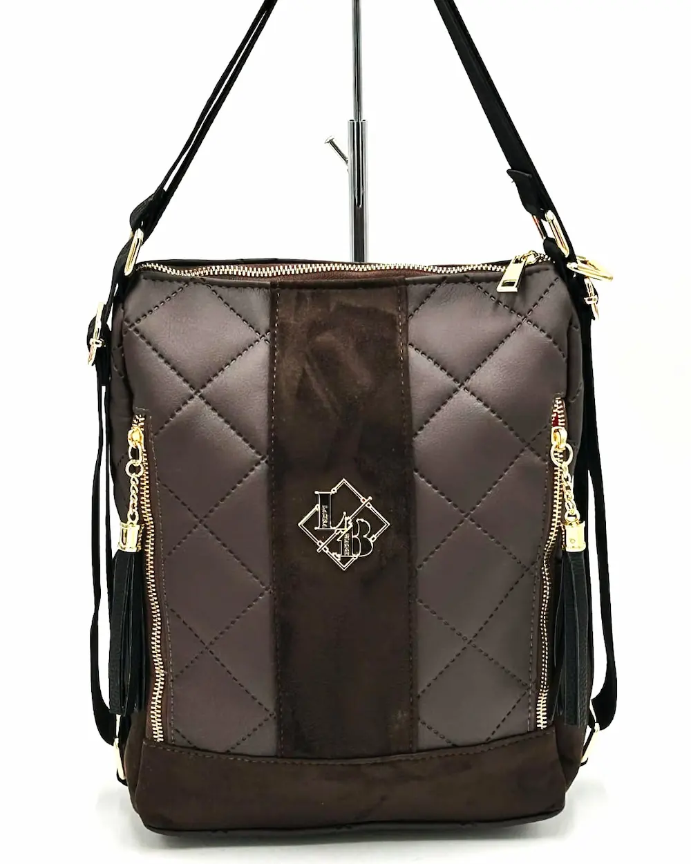 Laura Biaggi damska torebka plecak 2 w 1 pikowana brązowa – elegancja i wygoda w jednym