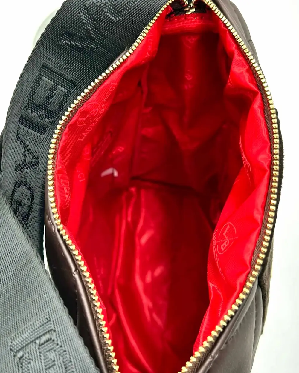 Środek torebki został wykończony elegancką czerwoną podszewką logowaną, która podkreśla jej luksusowy styl.