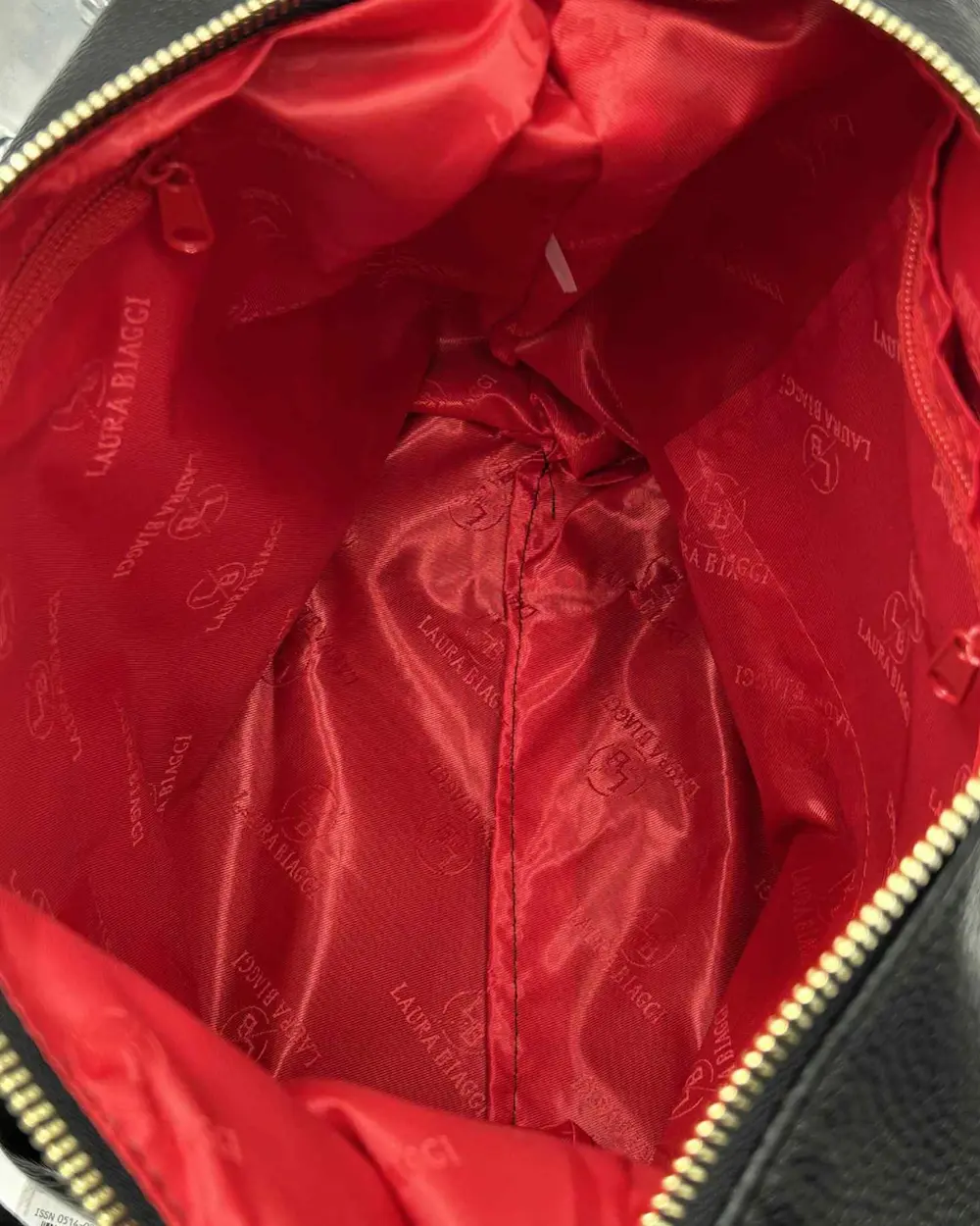 Model posiada jedną komorę zapinaną na suwak, mieszczącą format B5 – idealną na codzienne drobiazgi czy dokumenty. Wnętrze wykończone zostało elegancką, czerwoną logowaną podszewką, a praktyczny układ kieszonek (dwie zapinane na zamek i jedna otwarta) ułatwia organizację.