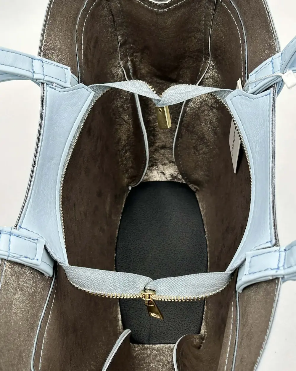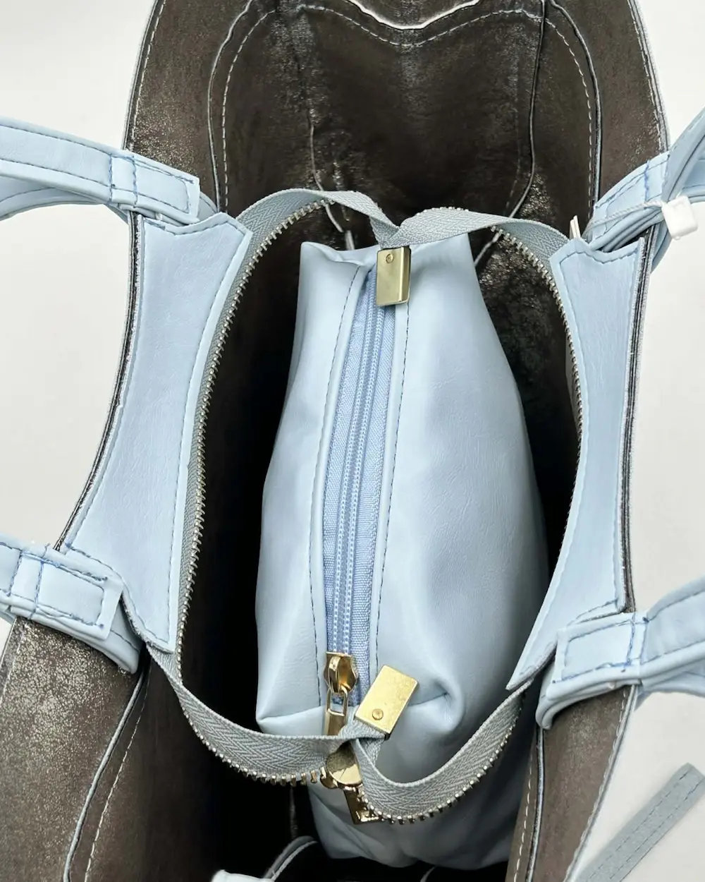Ten model shopperki Laura Biaggi przyciąga uwagę subtelnym, jasnym odcieniem niebieskiego, który nadaje stylizacjom lekkości i świeżości. To idealna propozycja dla kobiet, które chcą wprowadzić do swojej garderoby delikatny kolor, nie rezygnując z elegancji.