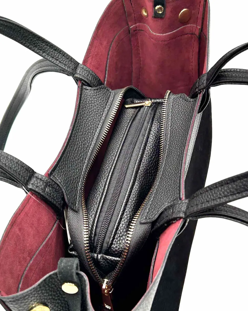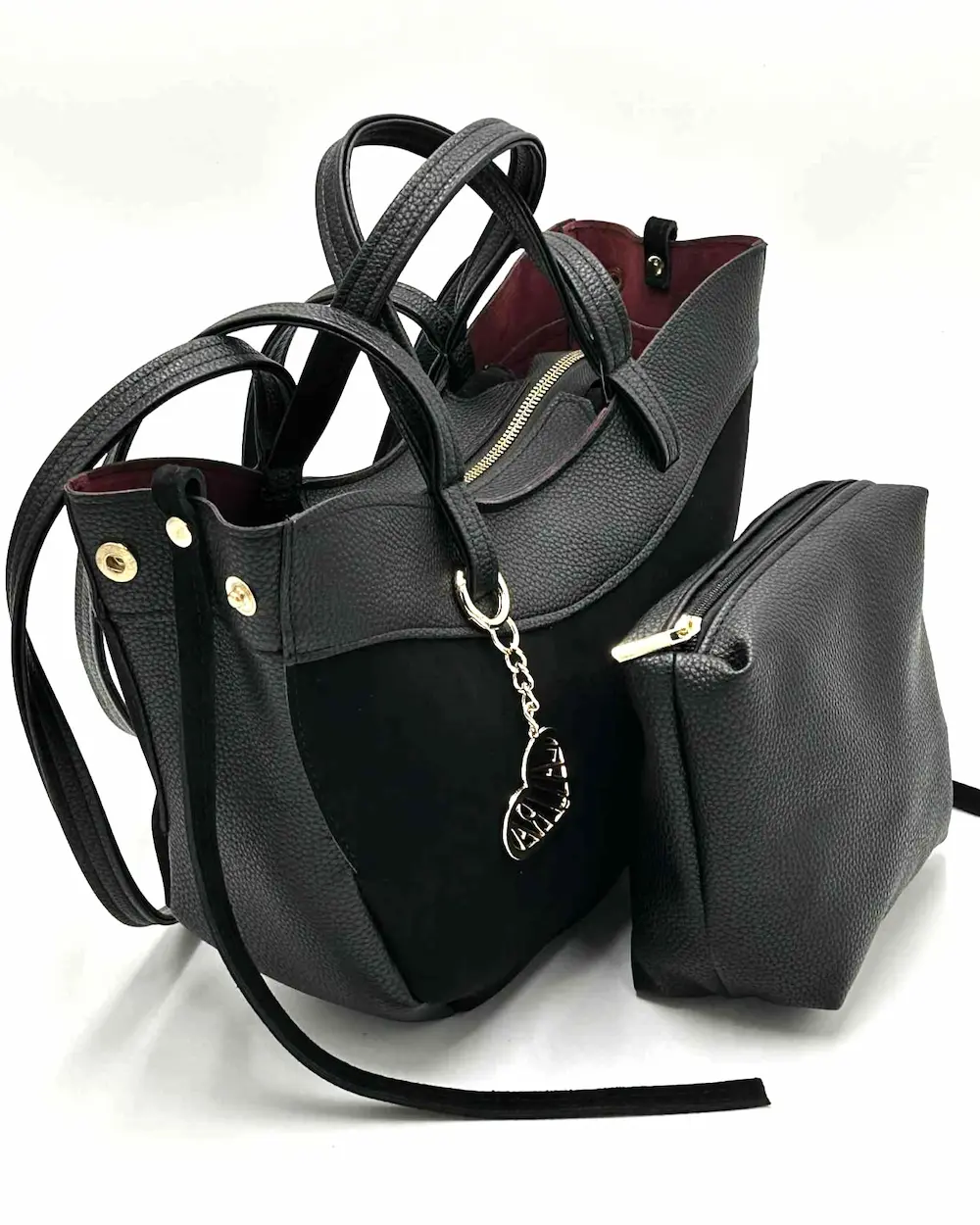 W środku znajduje się mały organizer, który można nosić razem z torebką lub osobno, w zależności od potrzeb.