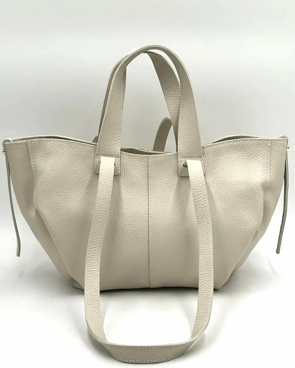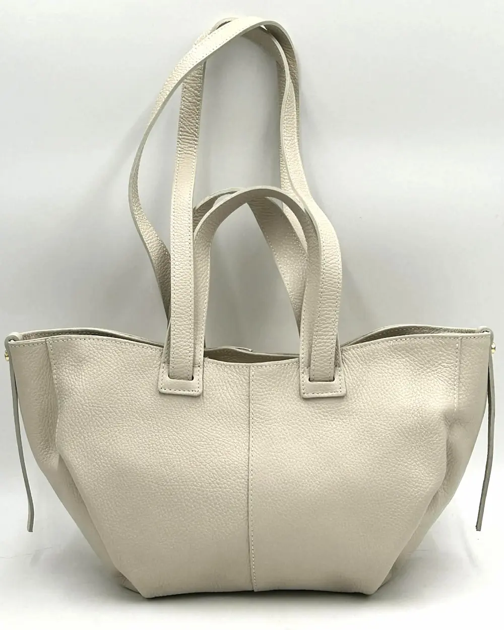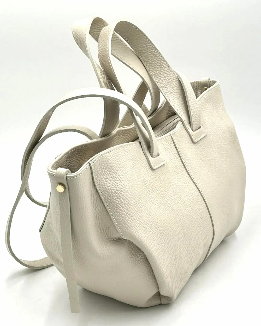 Jasnobeżowa torebka mini shopperka Laura Biaggi ze skóry naturalnej – włoska jakość i elegancja na co dzień