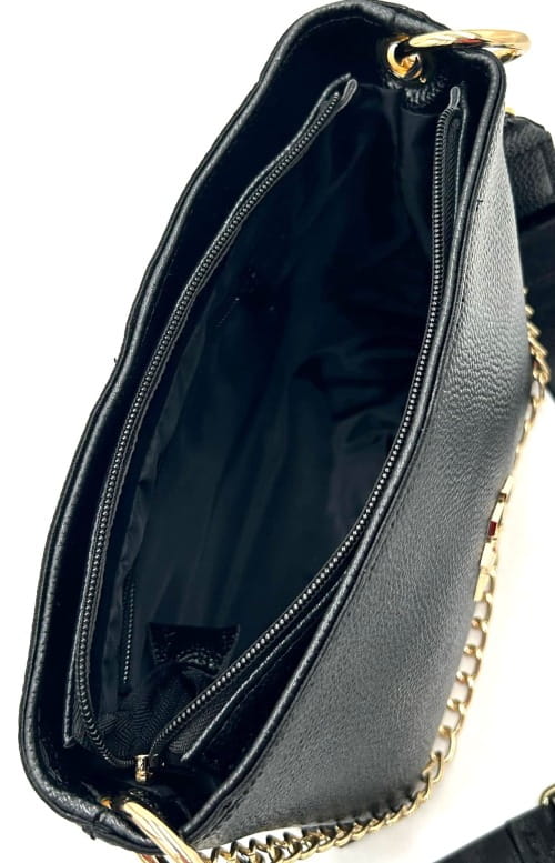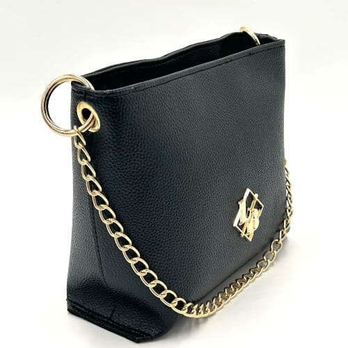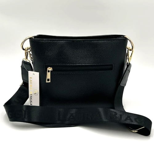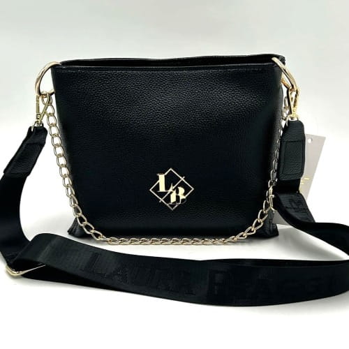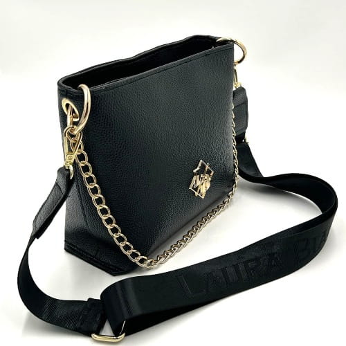 Czarna torebka Laura Biaggi to idealne połączenie miejskiego szyku z nutą luksusu. Stylowy kuferek przyciąga wzrok złotym łańcuszkiem i biżuteryjnym logo marki, a jego minimalistyczna forma sprawia, że pasuje zarówno do codziennych, jak i wieczorowych stylizacji.
